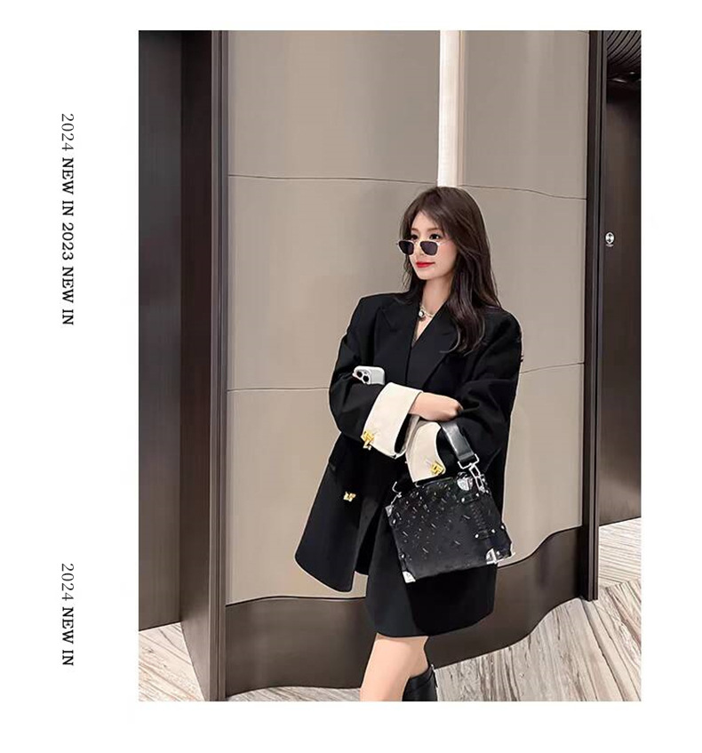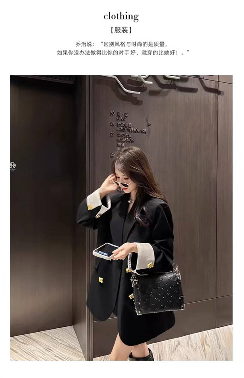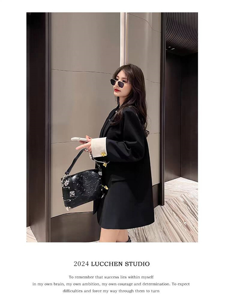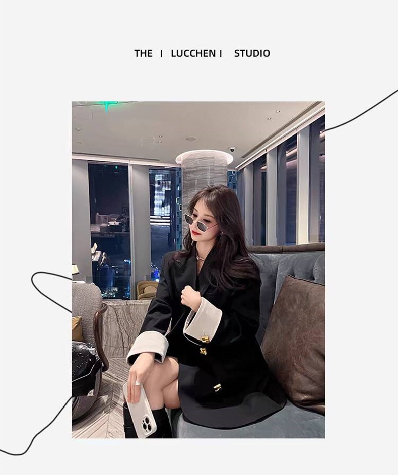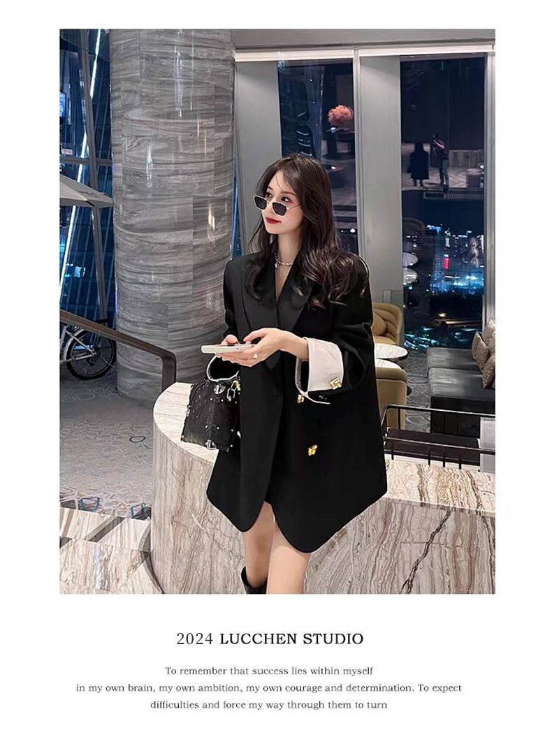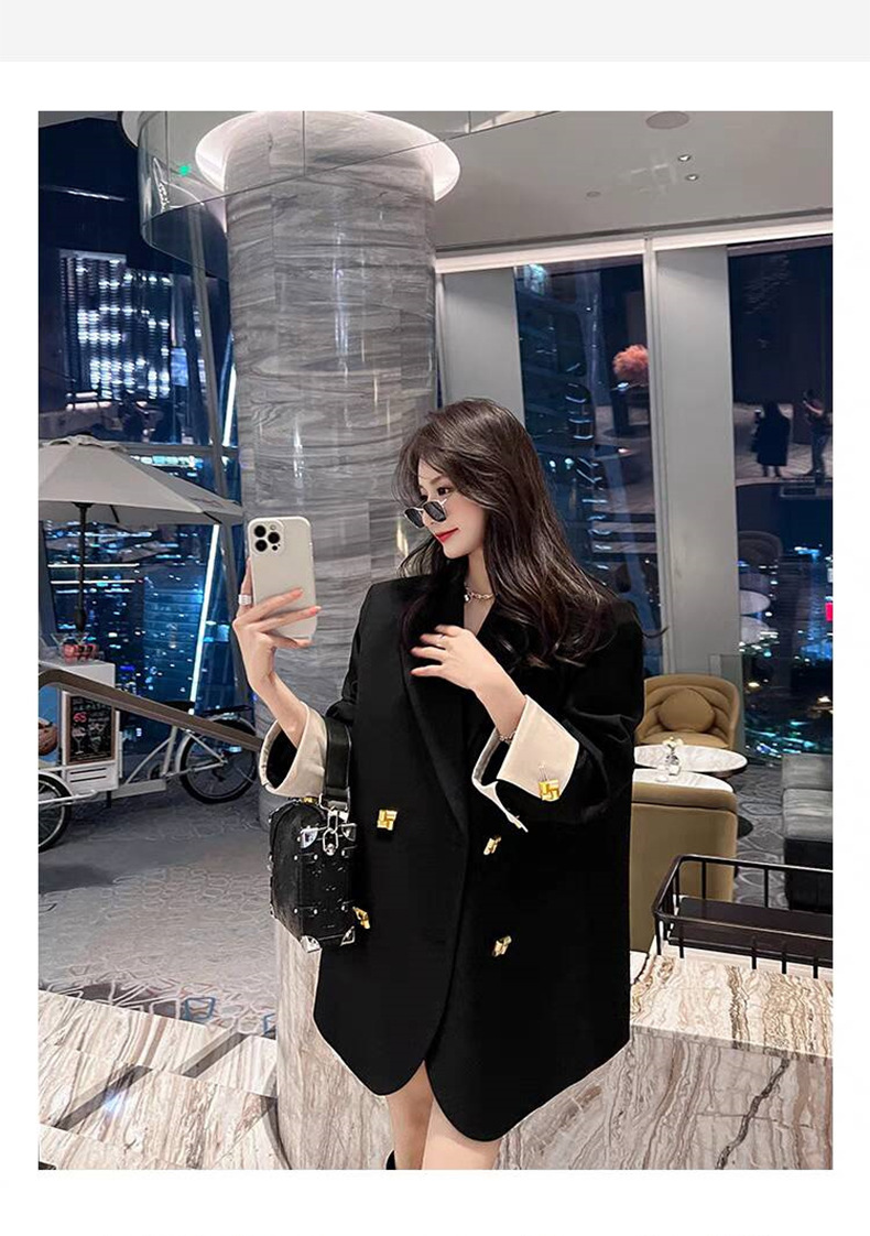 2025 봄 검은 세트 소매 우아한 느슨한 작은 세트 한국 패션 더블 브레스트 디자인 센스 세트스토어 가기