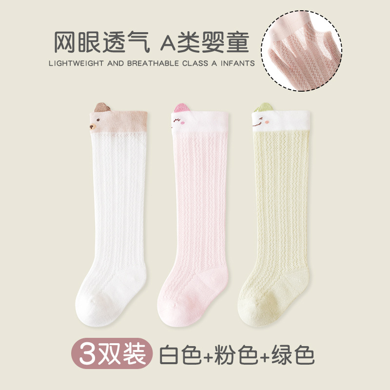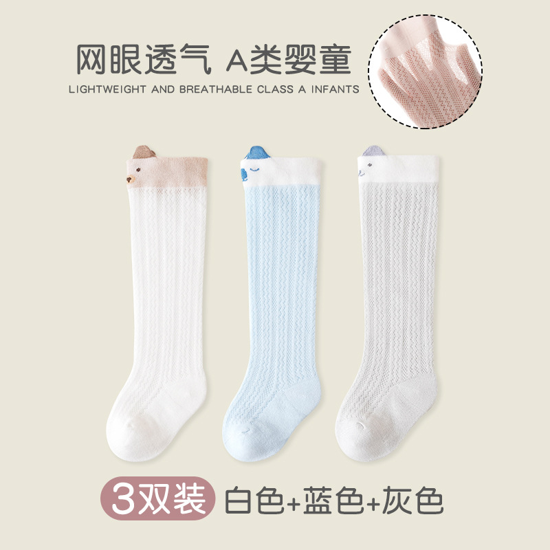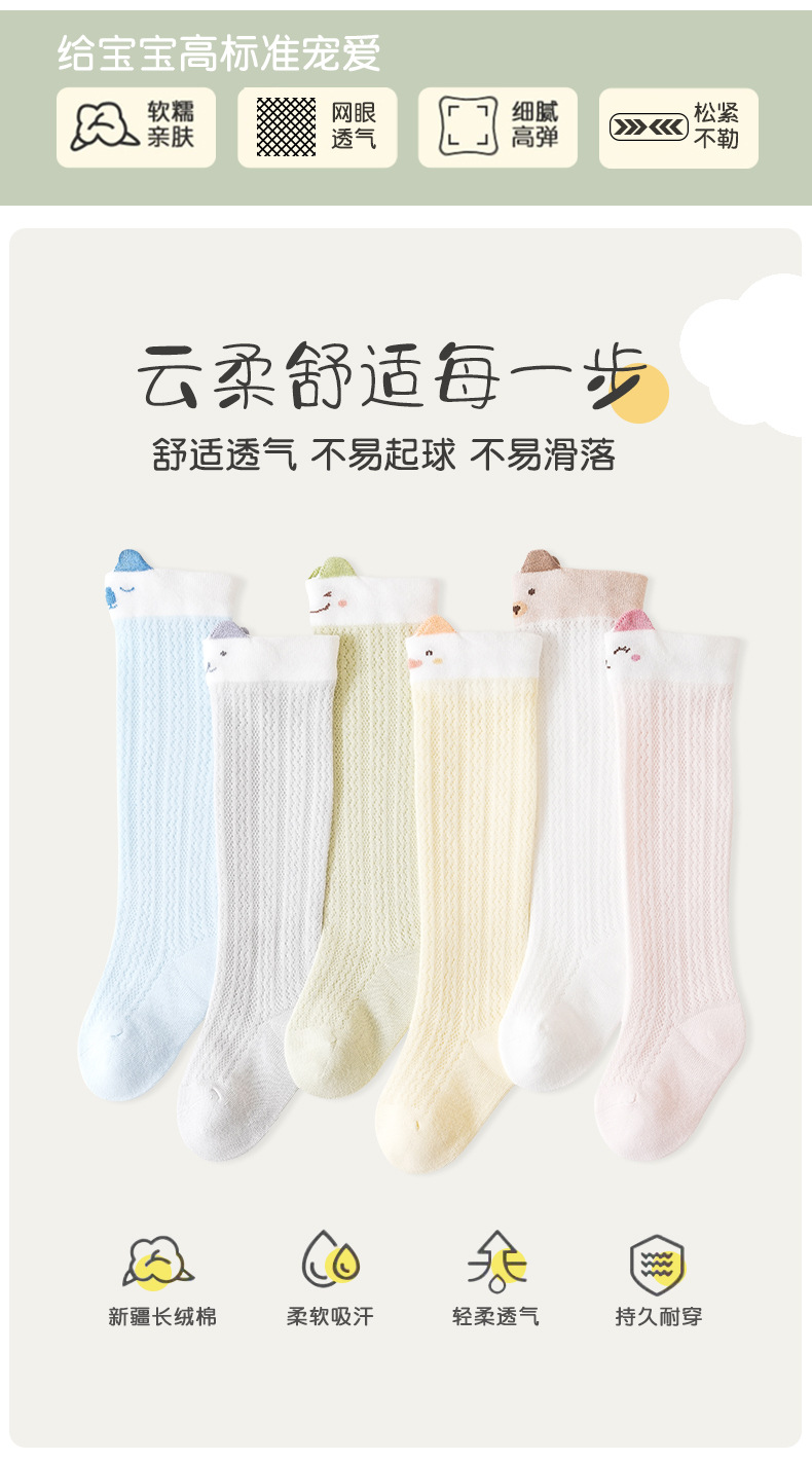 엄선된 아기용 무릎 위 양말, 봄 여름용 코마면 아동용 긴 양말, 만화 무봉제 신생아 모기 방지 양말 A급스토어 가기