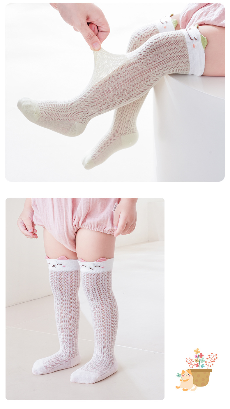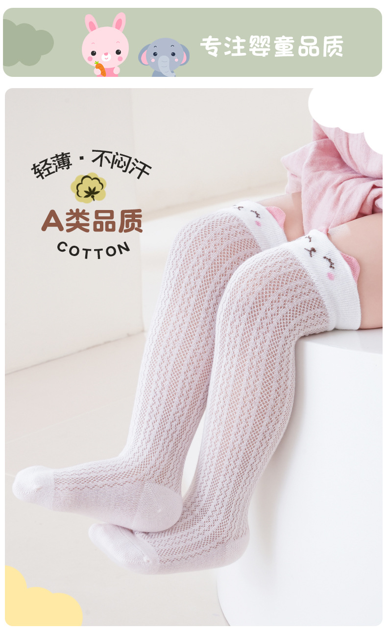 엄선된 아기용 무릎 위 양말, 봄 여름용 코마면 아동용 긴 양말, 만화 무봉제 신생아 모기 방지 양말 A급