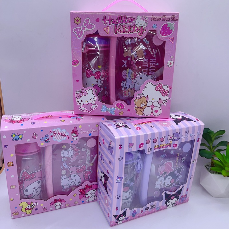 학생 만화 깜짝 물 컵 도시락 세트 귀여운 재미있는 선물 상자 휴대용 포장 도시락 어린이 휴대용 스나이퍼 컵