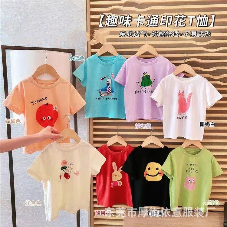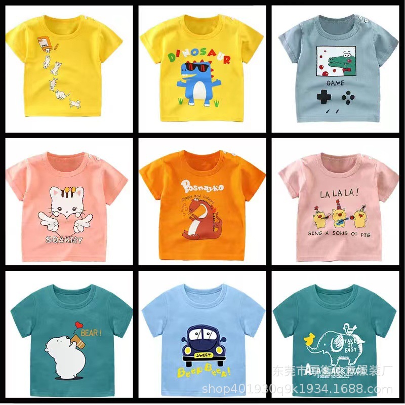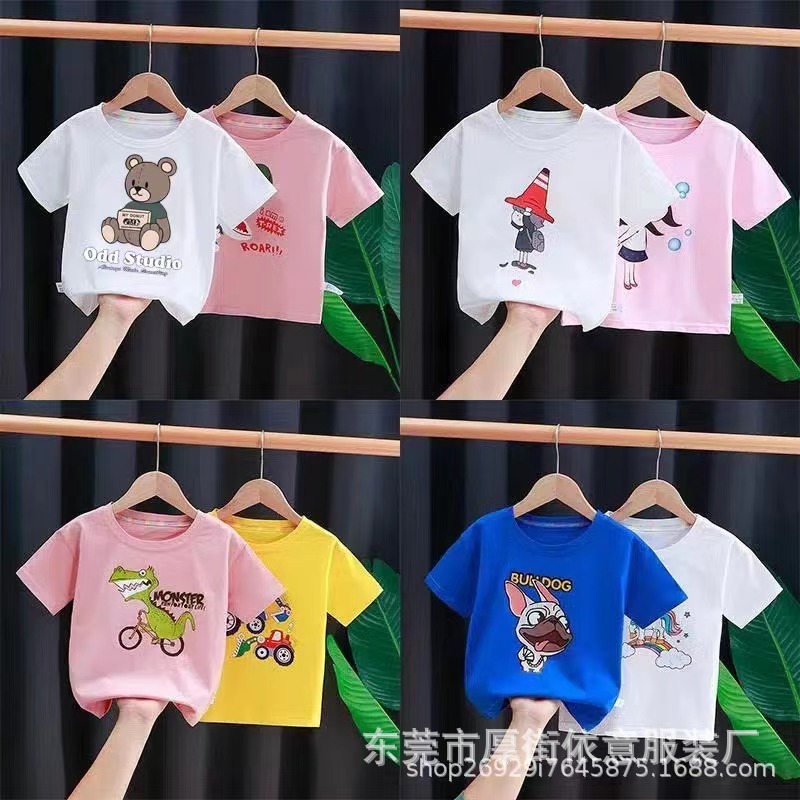 1 위안 아동복 반팔 매점 공급 도매 2025 여름 새로운 어린이 반팔 티셔츠 소년 소녀 바닥 셔츠스토어 가기