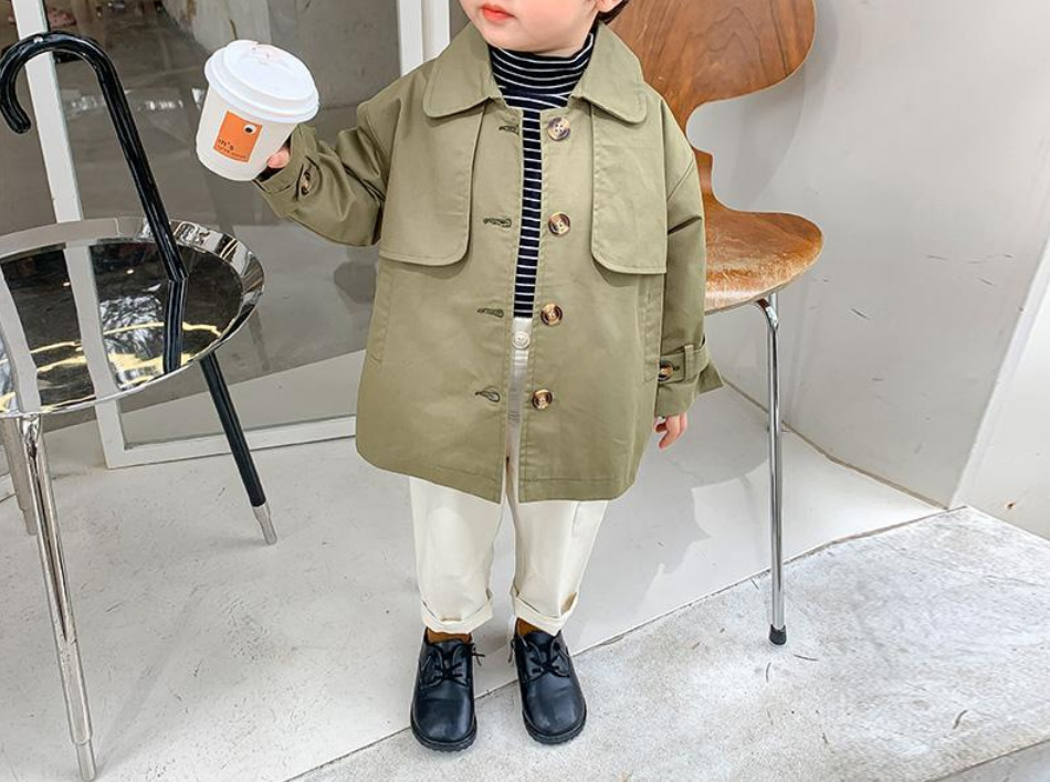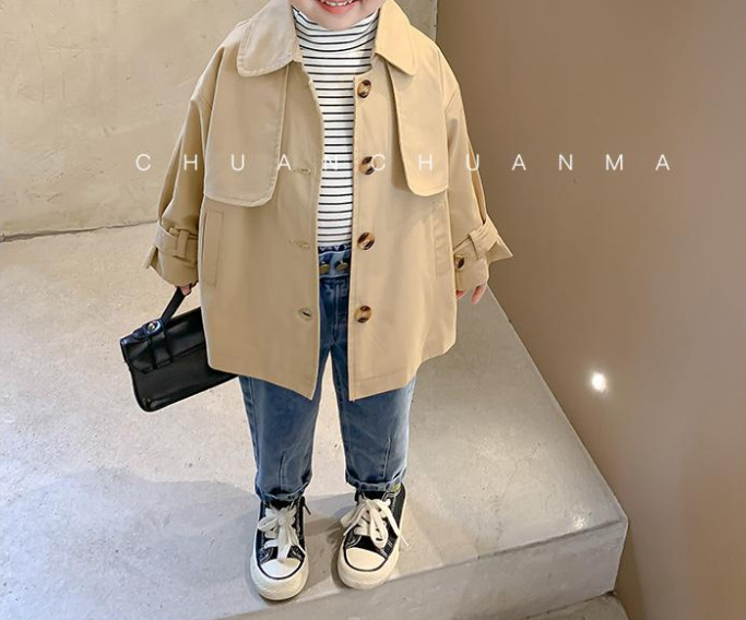 새로운 유행 어린이 봄과 가을 얇은 어린이 코트 소년 소녀를위한 중간 길이의 코트 봄과 가을 서양식 아기 코트