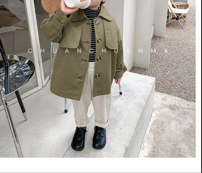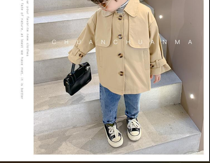 새로운 유행 어린이 봄과 가을 얇은 어린이 코트 소년 소녀를위한 중간 길이의 코트 봄과 가을 서양식 아기 코트스토어 가기