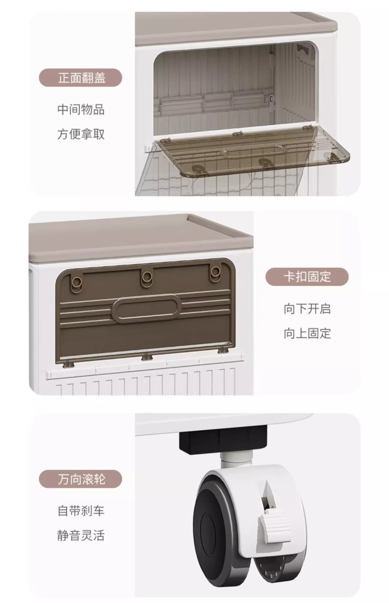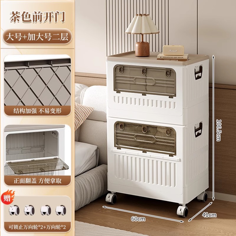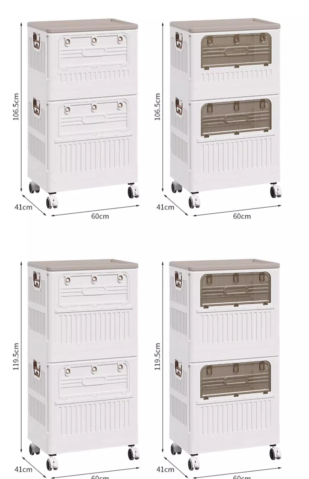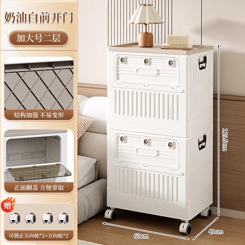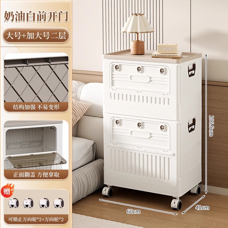 • 대형단층 - 크림색상 [60*41*51cm] 플립커버 + 전면도어