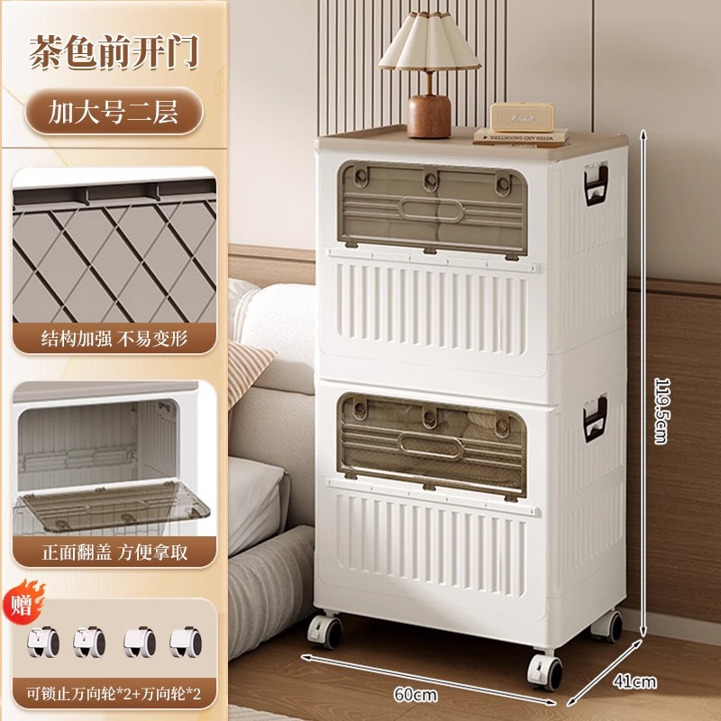 • 특대형 2층 - 브라운 [플립커버+전면도어/2배분류수납]