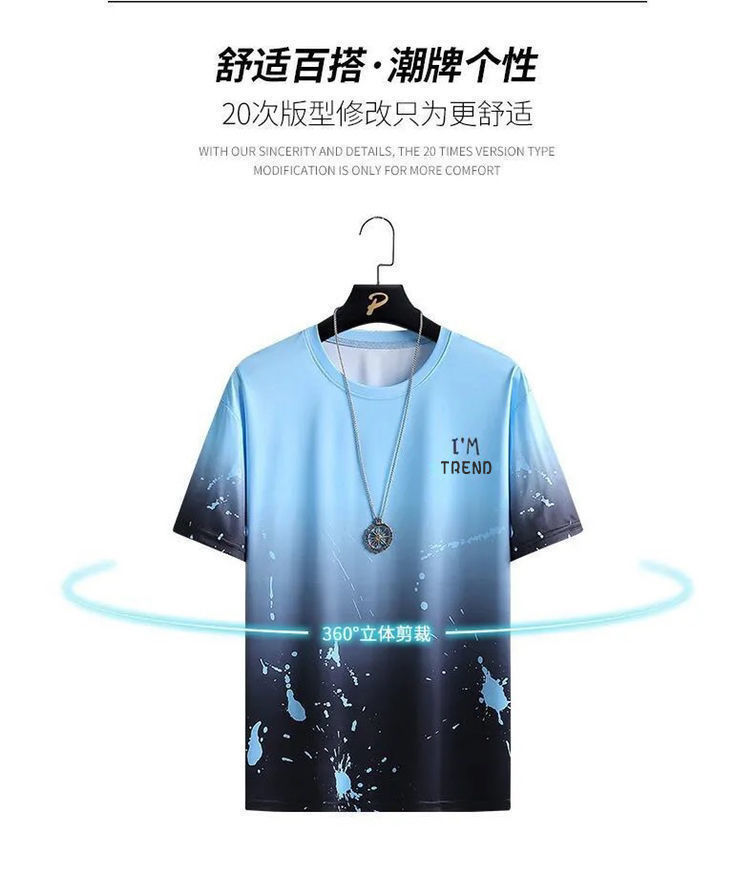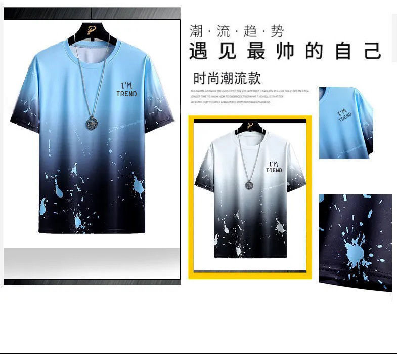 세트 새로운 퀵 드라이 아이스 실크 그라디언트 남성용 반팔 티셔츠 여름 캐주얼 반바지 스포츠 투피스 핸섬 남성복스토어 가기