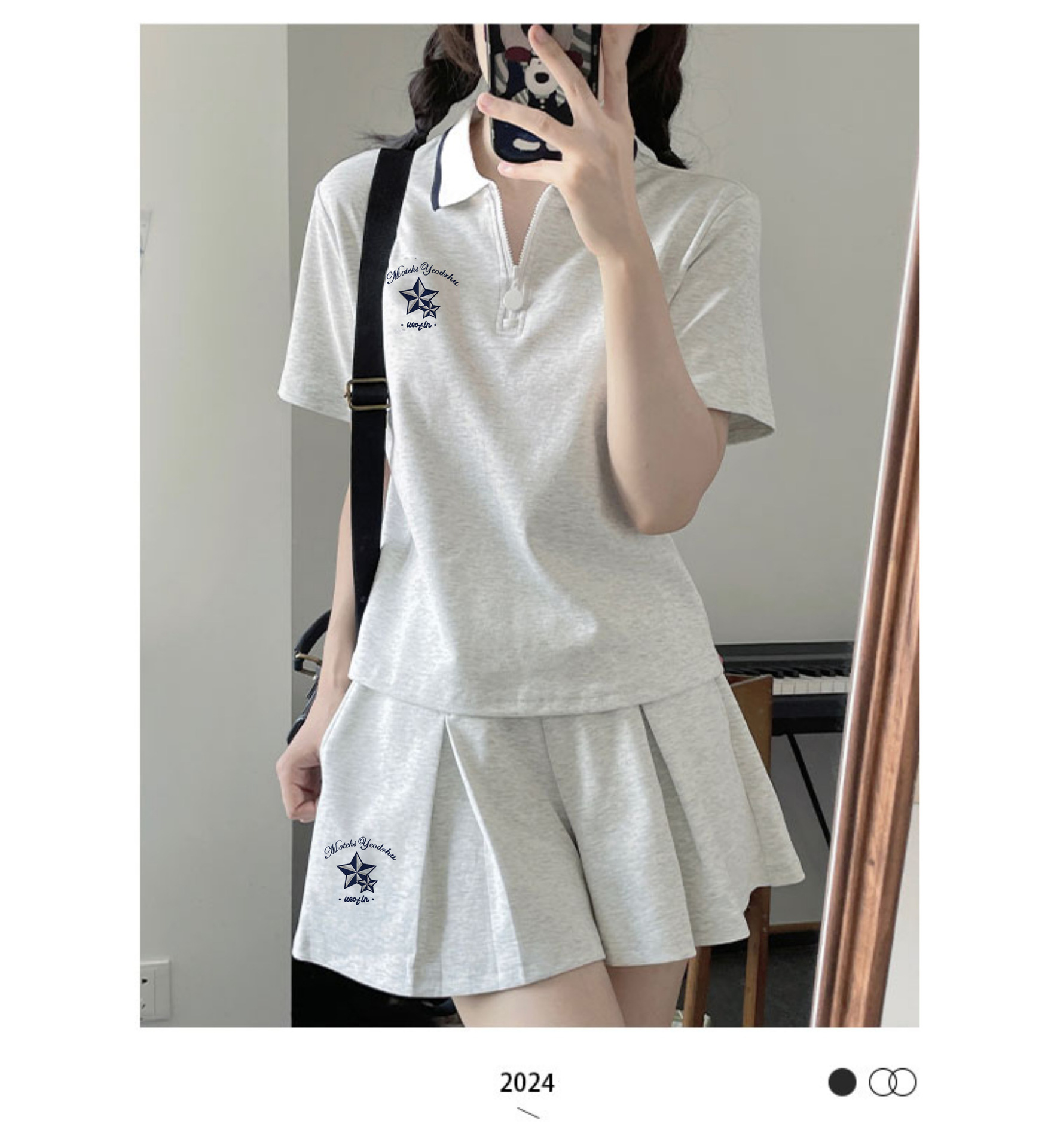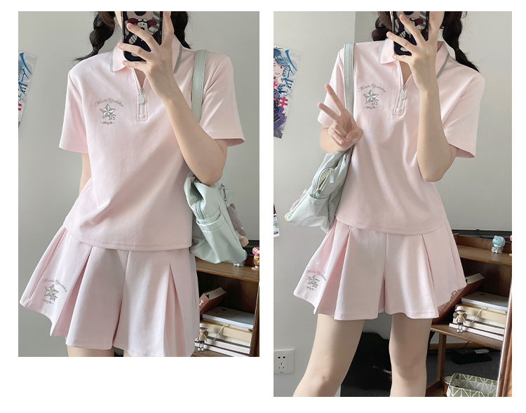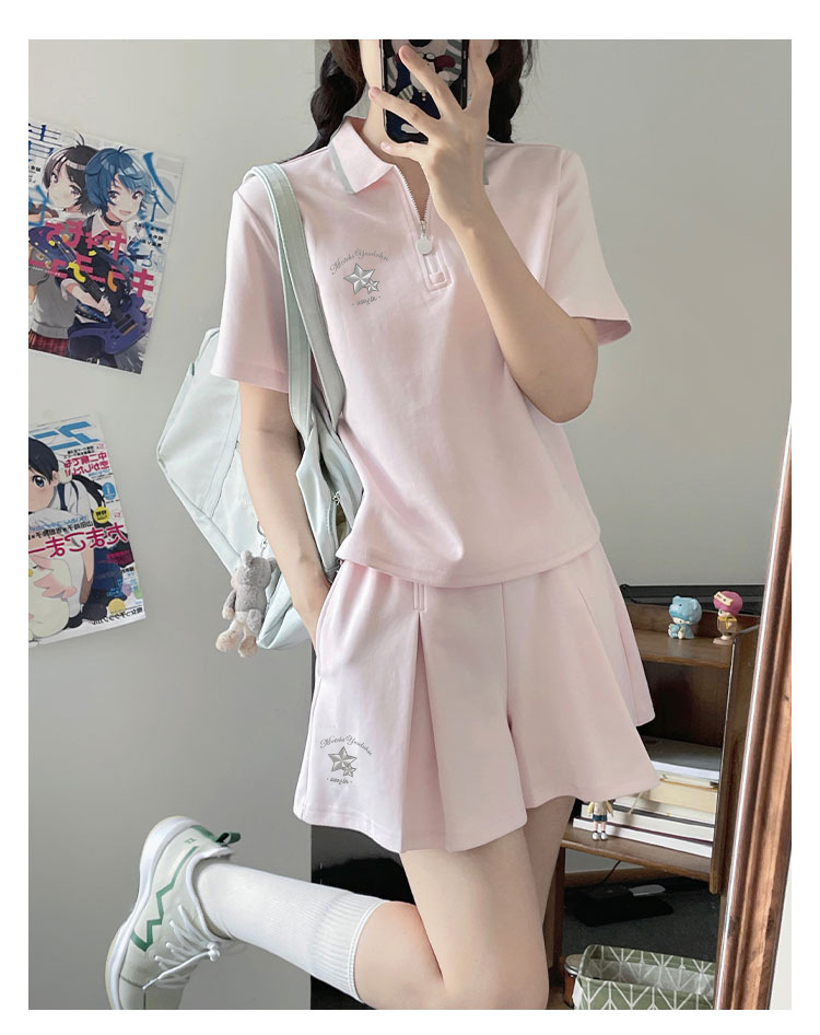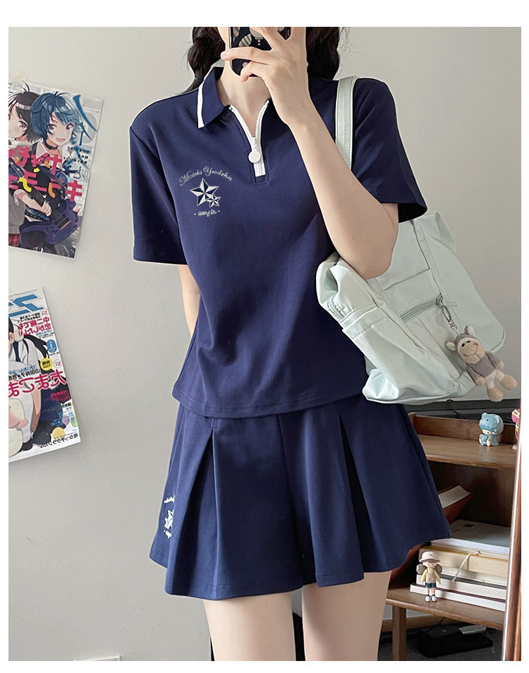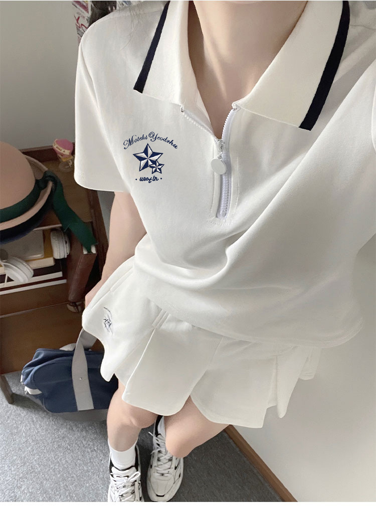 스포츠웨어 주름 짧은 치마 세트 소녀의 여름 2025 새로운 중학교 고등학교 고등학생 폴로 칼라 원피스스토어 가기