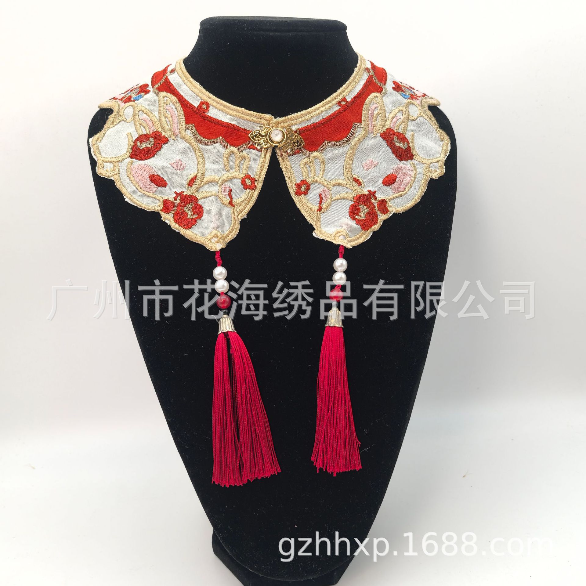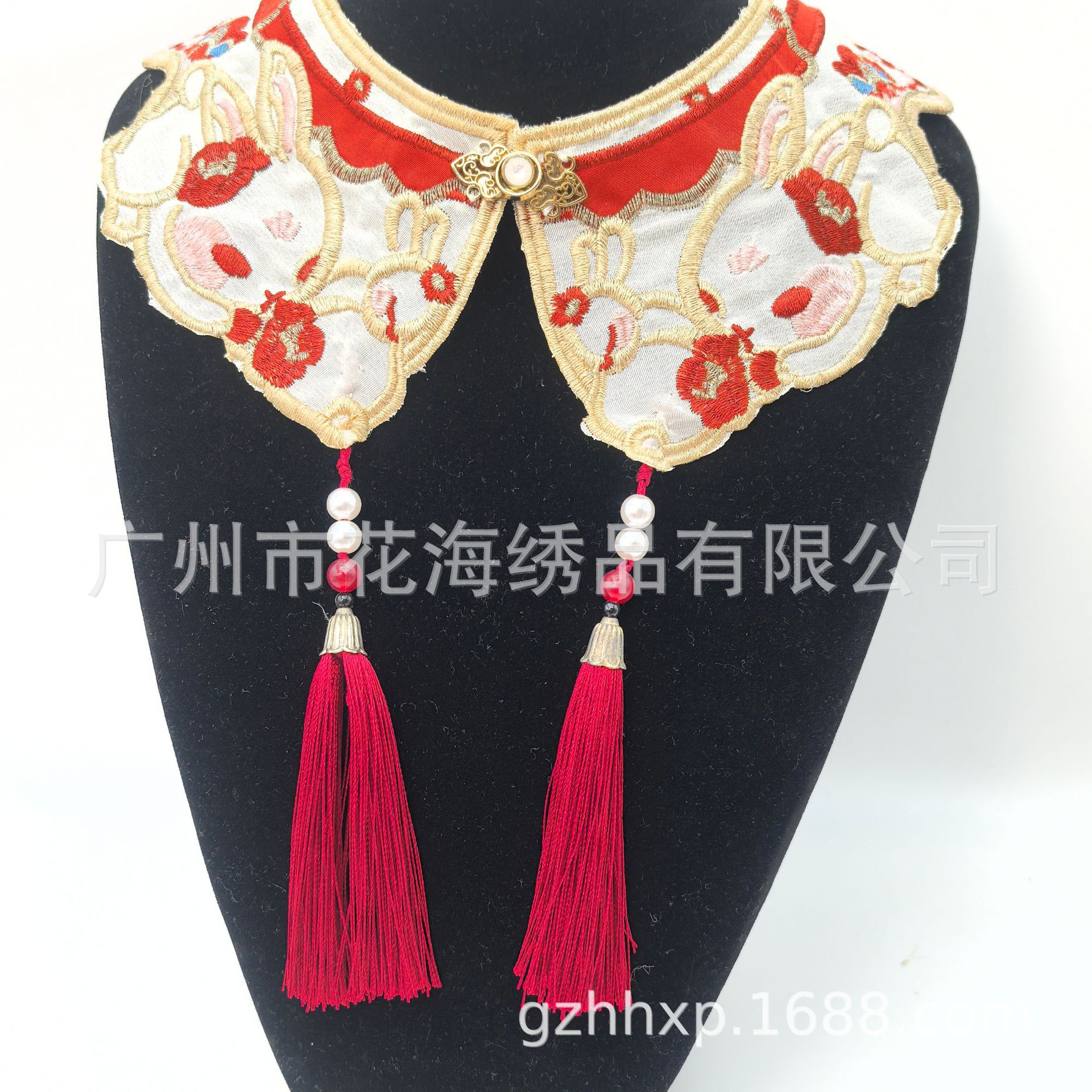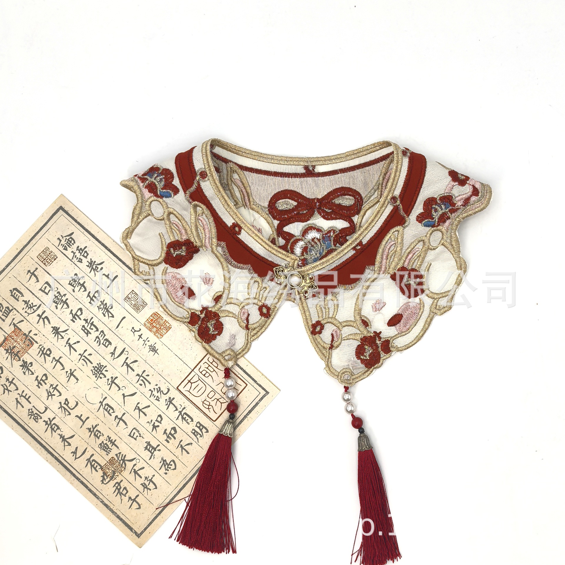 어린이 고대 중국 의류 말 얼굴 스커트 칼라 플라워 구름 어깨 토끼 자수 가짜 칼라 골드 라인 구슬 어린이 성인