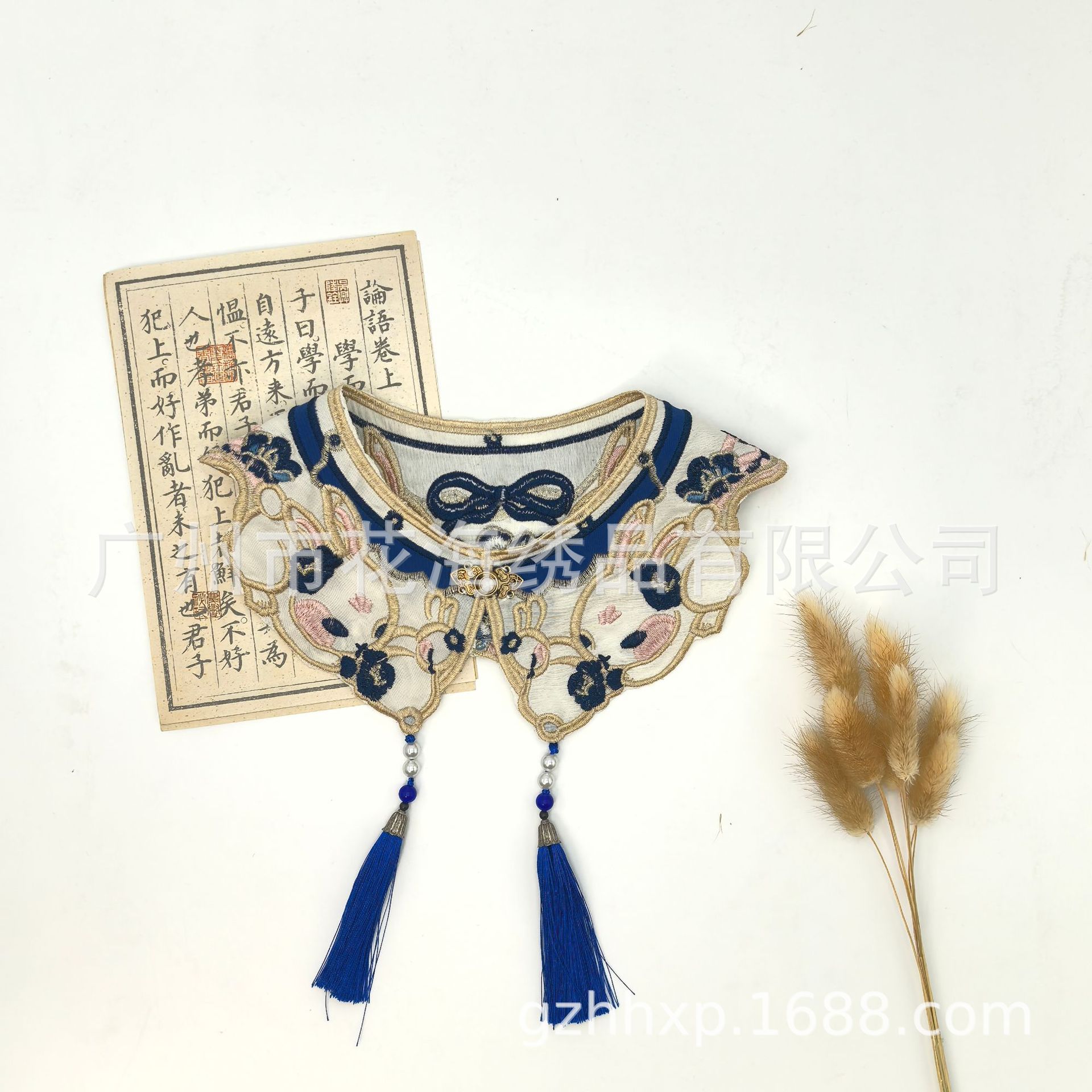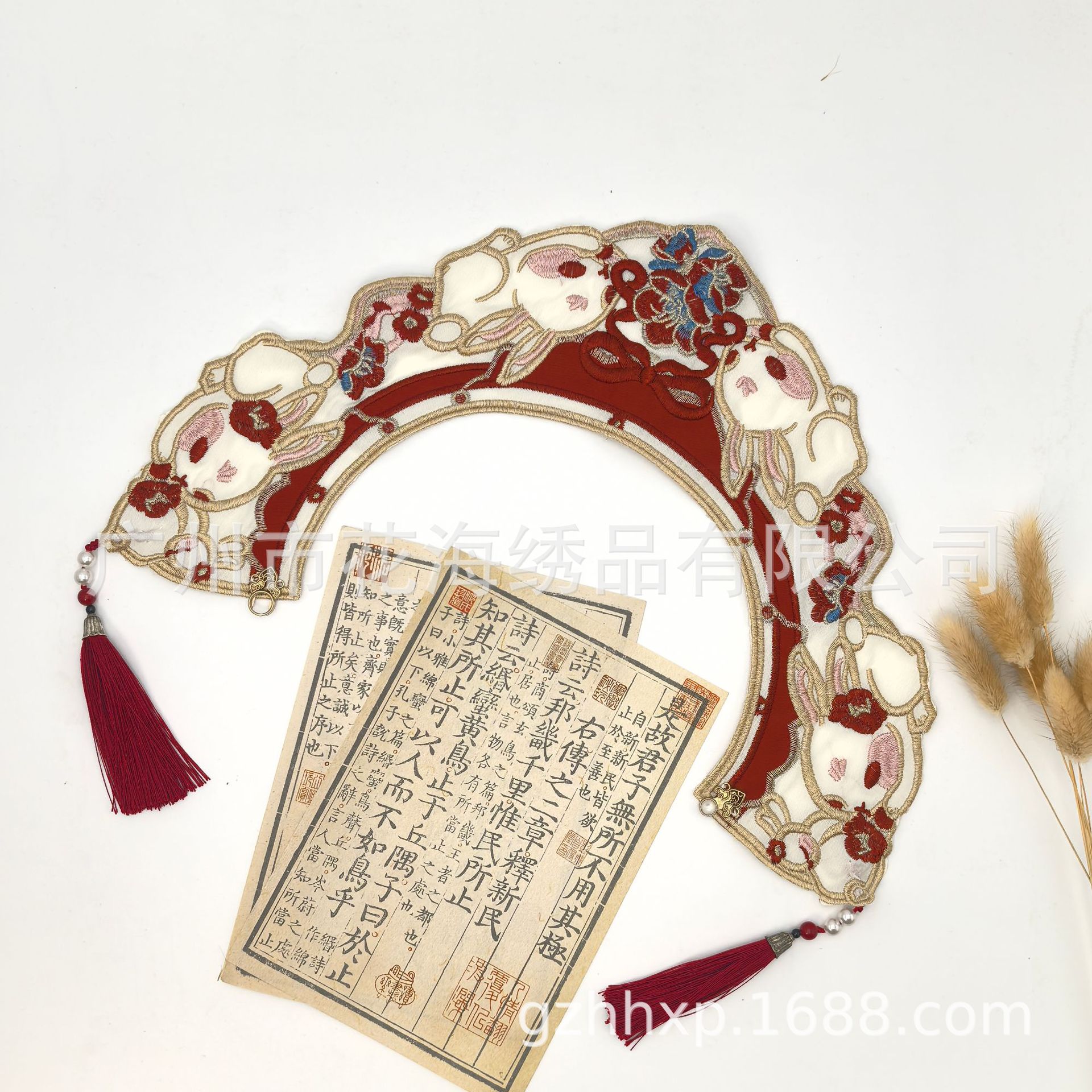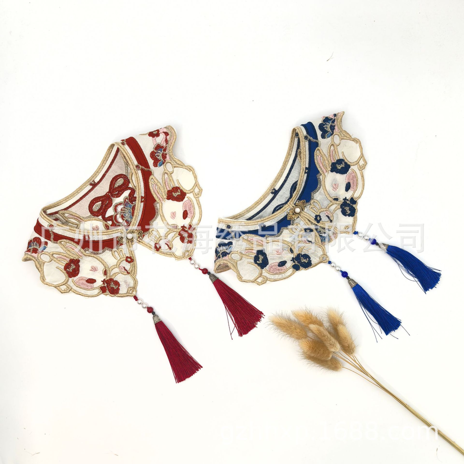 어린이 고대 중국 의류 말 얼굴 스커트 칼라 플라워 구름 어깨 토끼 자수 가짜 칼라 골드 라인 구슬 어린이 성인