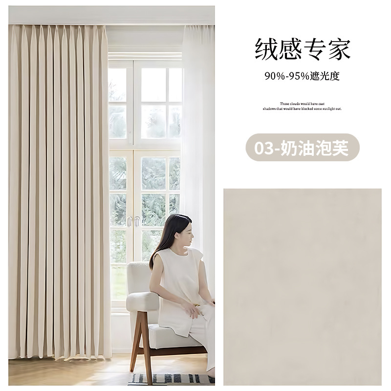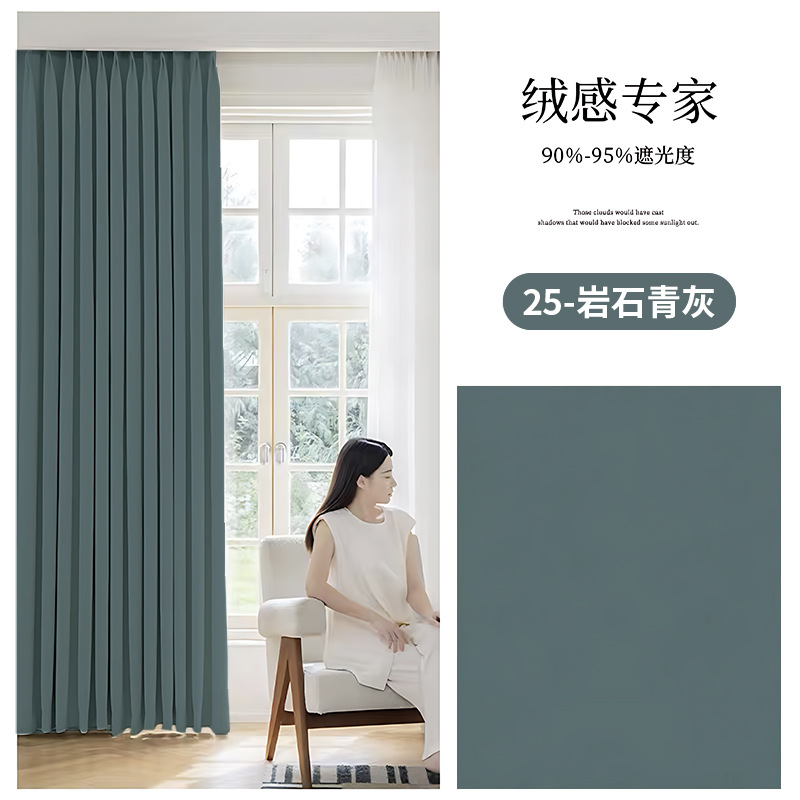 블랙 아웃 마스터 커튼 2025 새로운 셔닐 완전 블랙 아웃 간단한 현대 방음 및 단열 거실 커튼스토어 가기