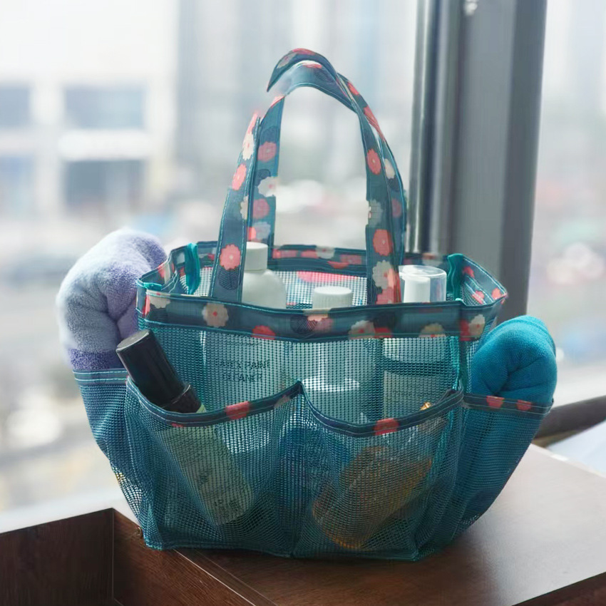 국경 간 Teslin 메쉬 샤워 가방 학생 기숙사 세면 용품 가방 멀티 포켓 야외 여행 모래 가방 휴대용스토어 가기