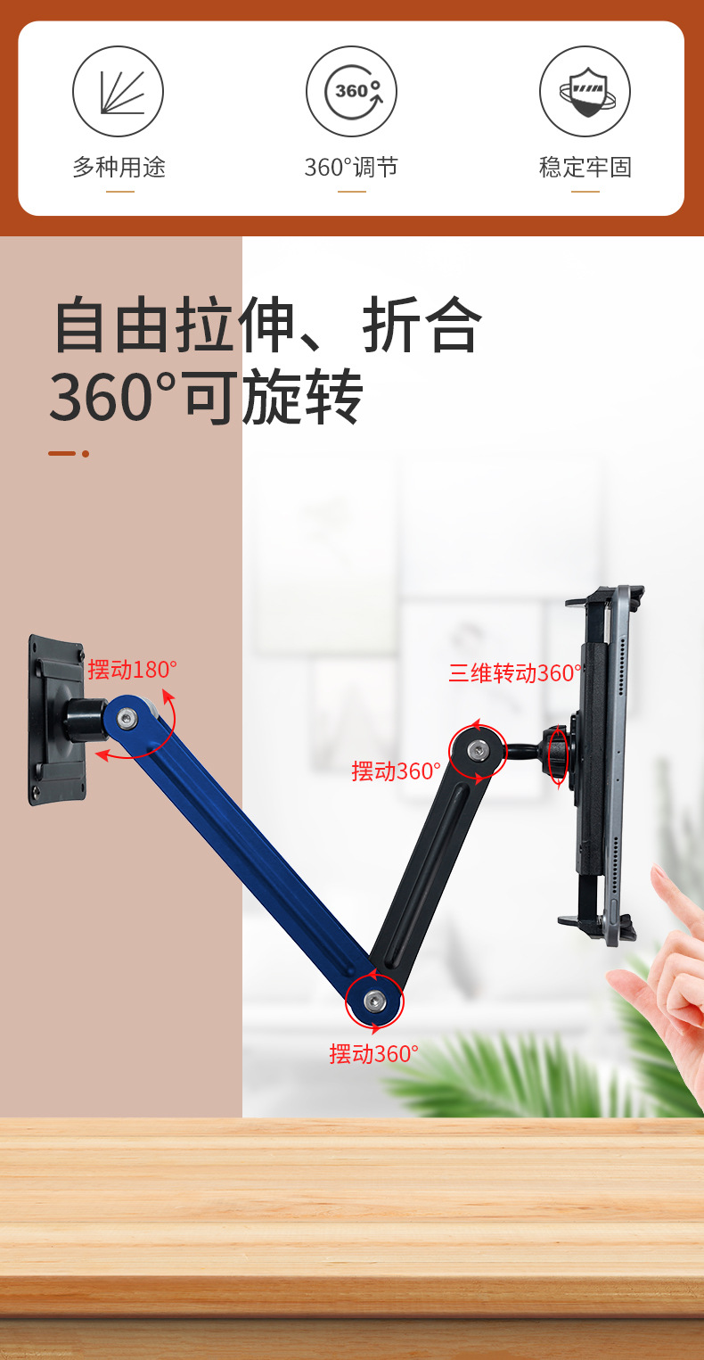 크로스보더 금속 휴대폰/태블릿 거치대, 2단 접이식 벽걸이형 고정 거치대, 스크린 범용스토어 가기