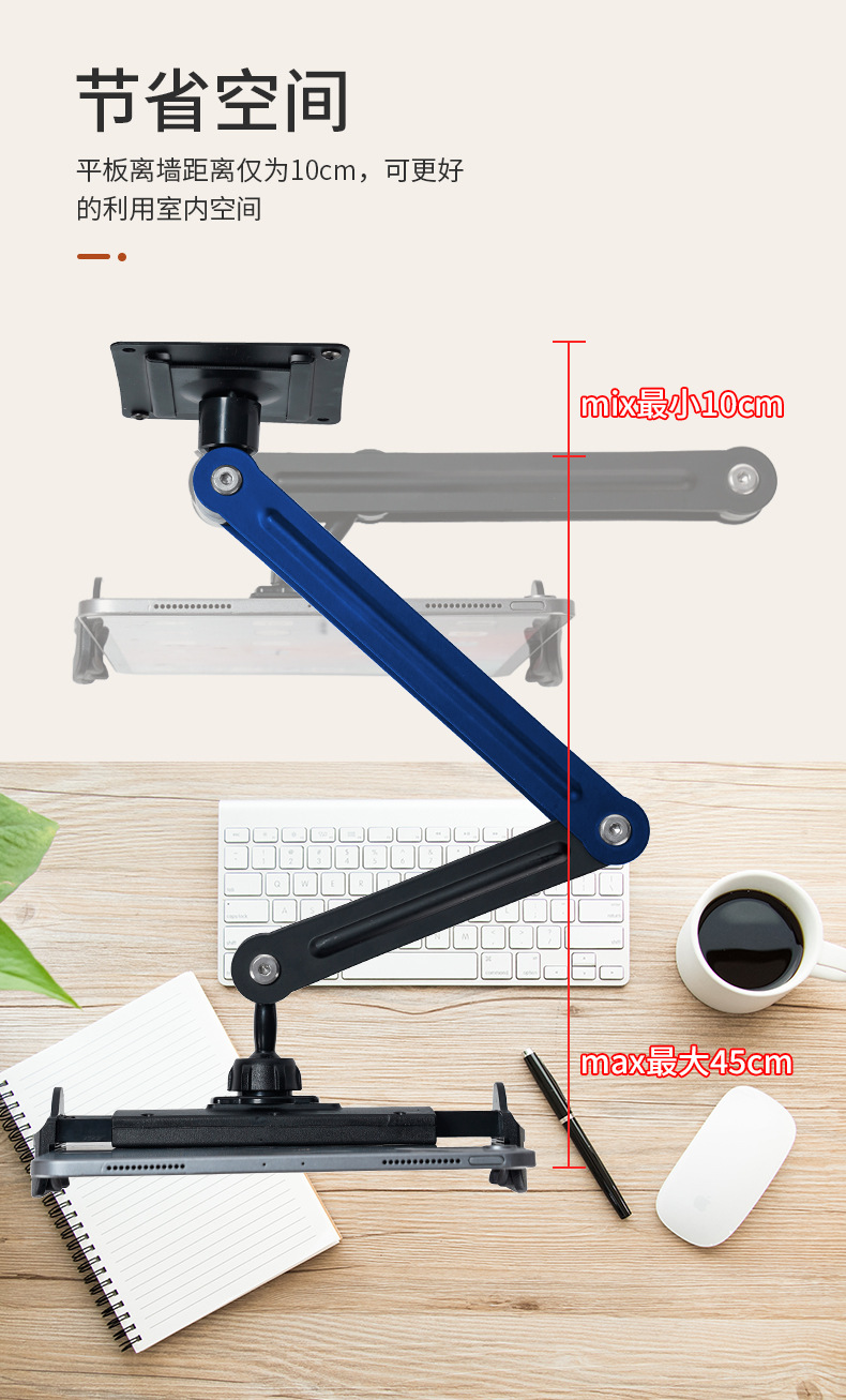 크로스보더 금속 휴대폰/태블릿 거치대, 2단 접이식 벽걸이형 고정 거치대, 스크린 범용
