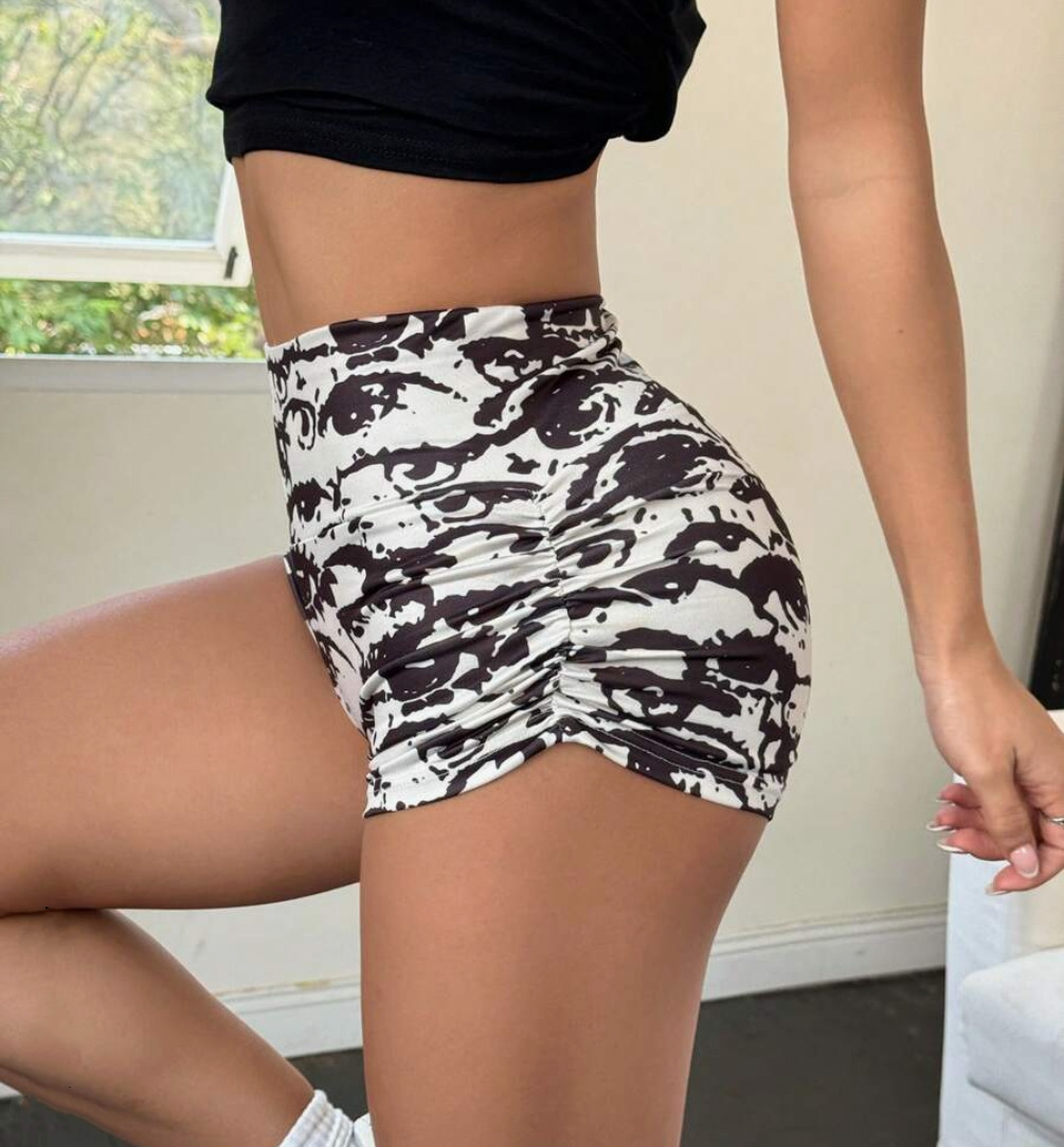 아마존 여름 새로운 솔리드 컬러 핫 걸스는 유럽과 미국의 스포츠 짧은 주름 핫 팬츠