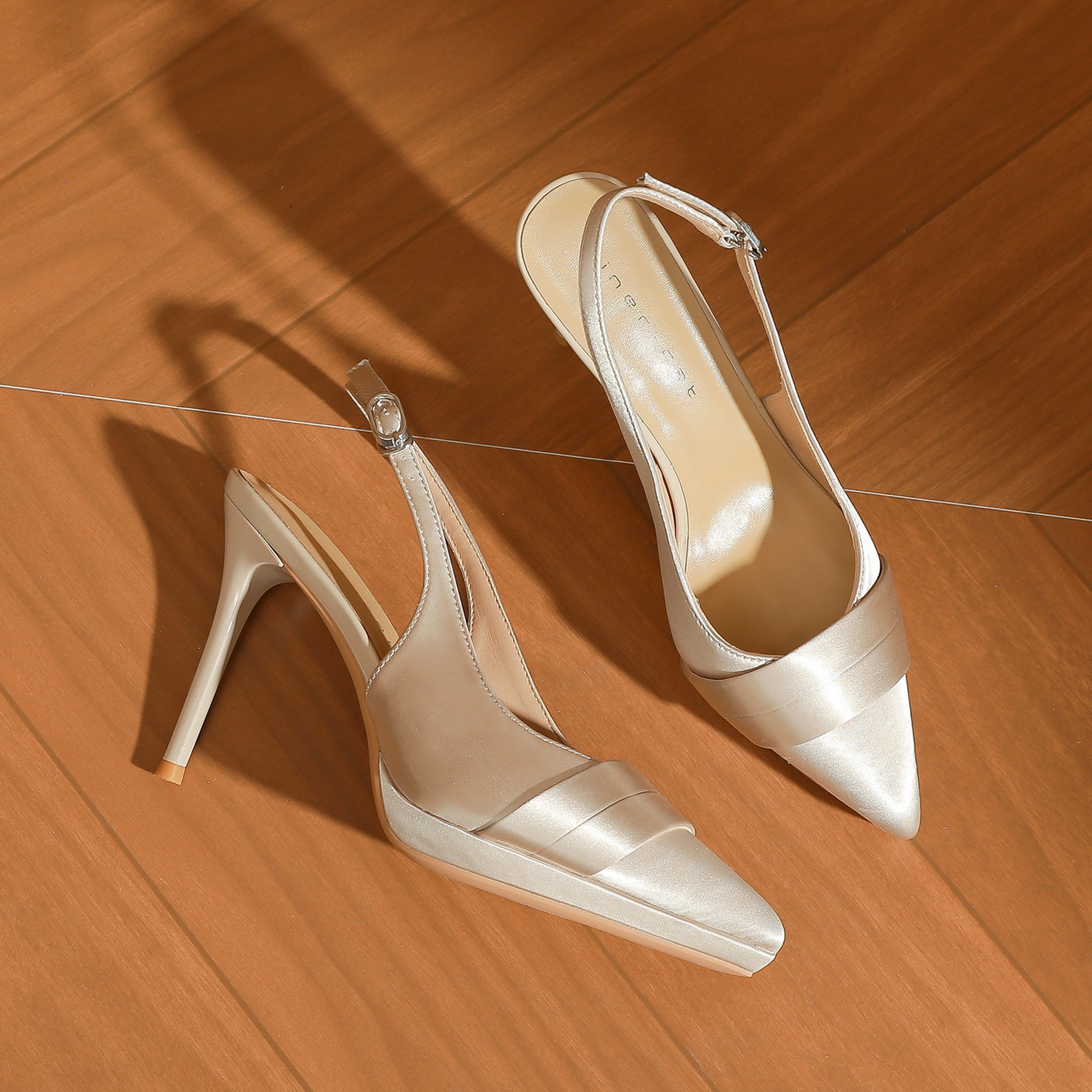 10631【양가죽】여성용 하이힐, 얇은 굽, 2026년 신상, 뒤가 열린 샌들, 뾰족코, 방수 플랫폼 슈즈