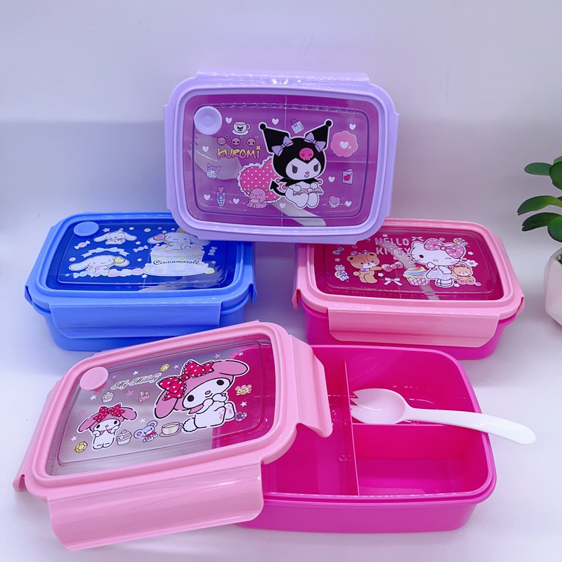 창조적 인 만화 플라스틱 3 칸 도시락 숟가락 도시락을 가진 학생들을 위한 대용량 도시락스토어 가기