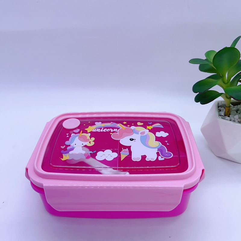 창조적 인 만화 플라스틱 3 칸 도시락 숟가락 도시락을 가진 학생들을 위한 대용량 도시락