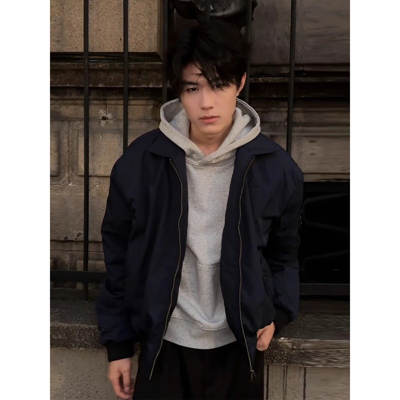 아메리칸 스타일 레트로 폭격기 재킷 남자 봄과 가을 클렌핏 패션 브랜드 네이비 퍼피 잘 생긴 커플 야구 세트 재킷스토어 가기