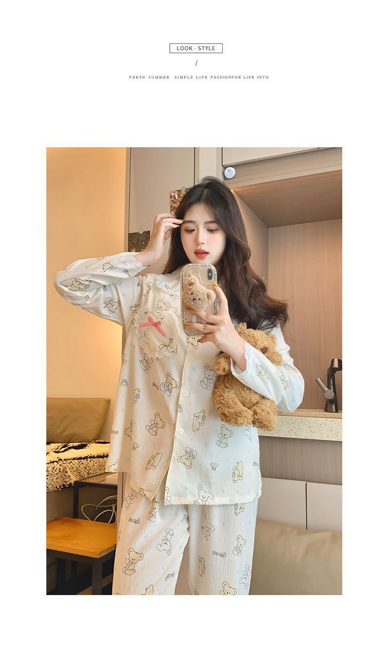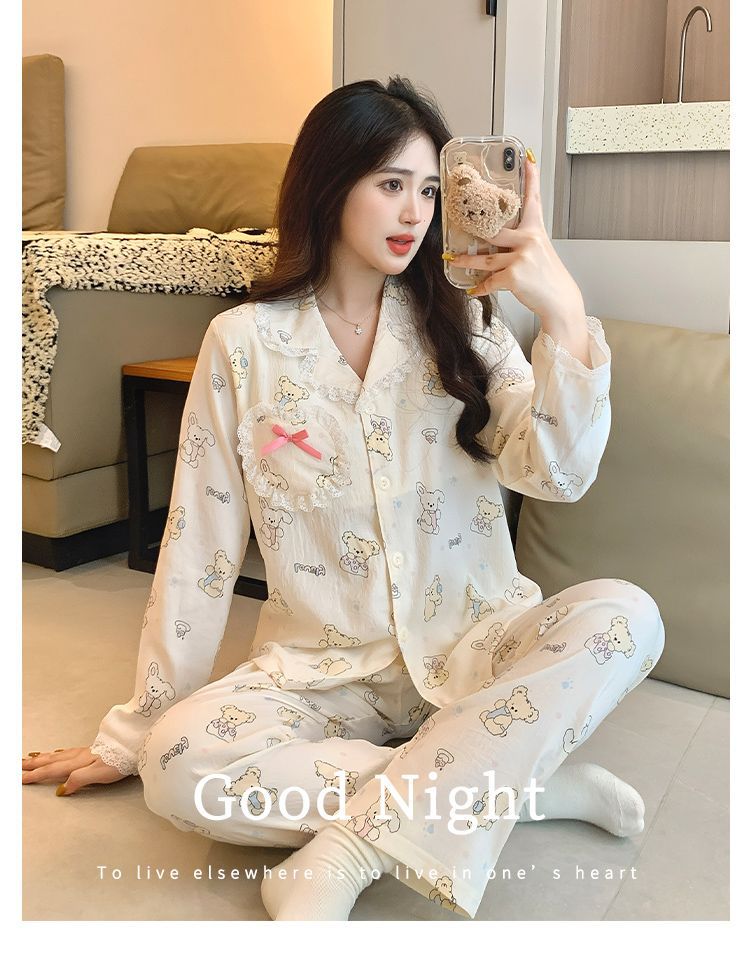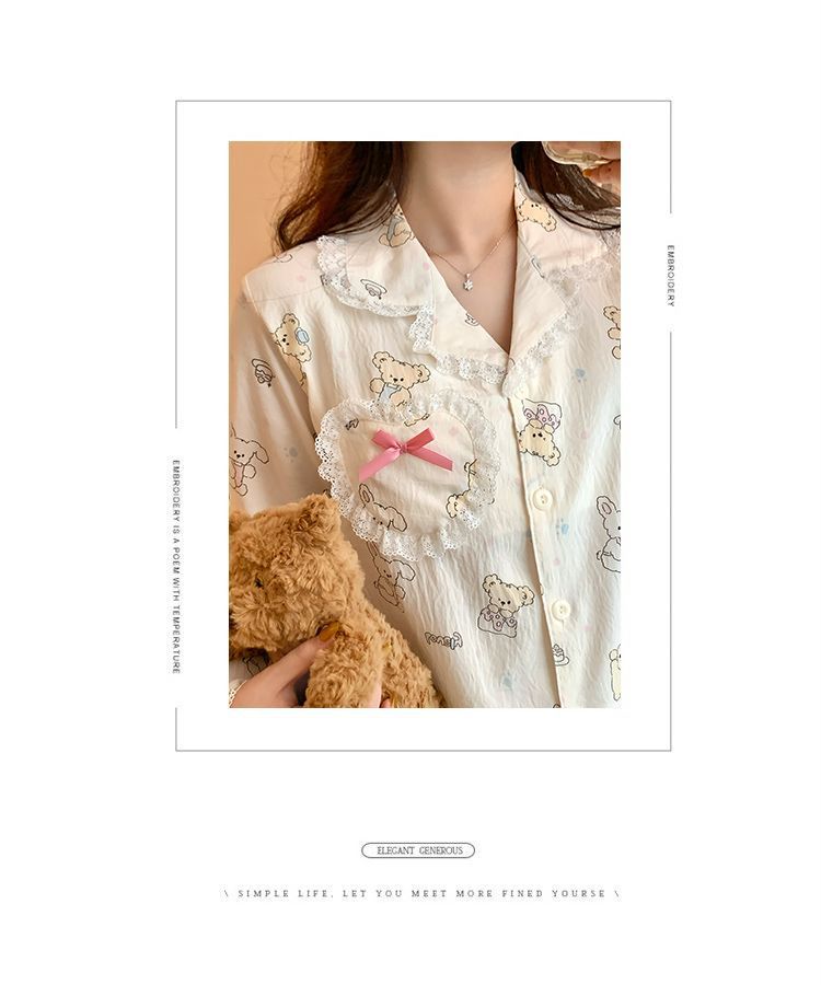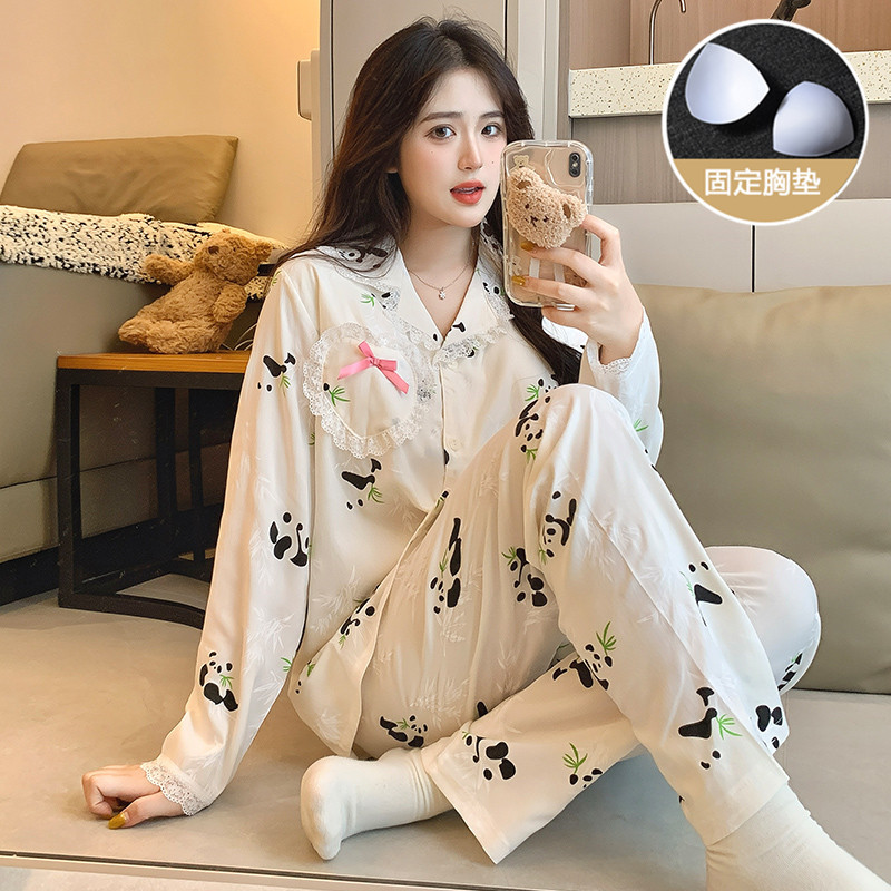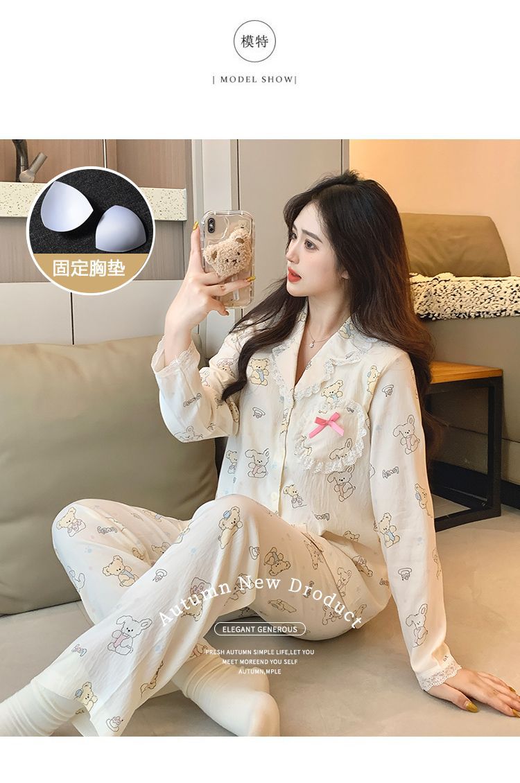 잠옷 여성의 봄 새로운 구름 코튼 레이스 카디건 고정 가슴 패드 달콤한 귀여운 한국 스타일 소녀의 홈 옷스토어 가기