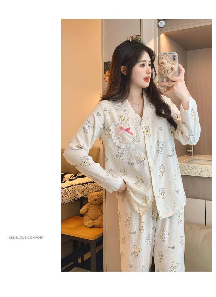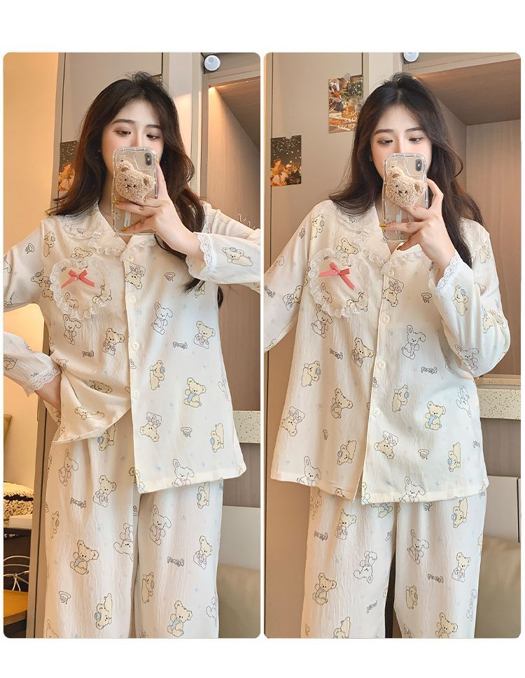 잠옷 여성의 봄 새로운 구름 코튼 레이스 카디건 고정 가슴 패드 달콤한 귀여운 한국 스타일 소녀의 홈 옷