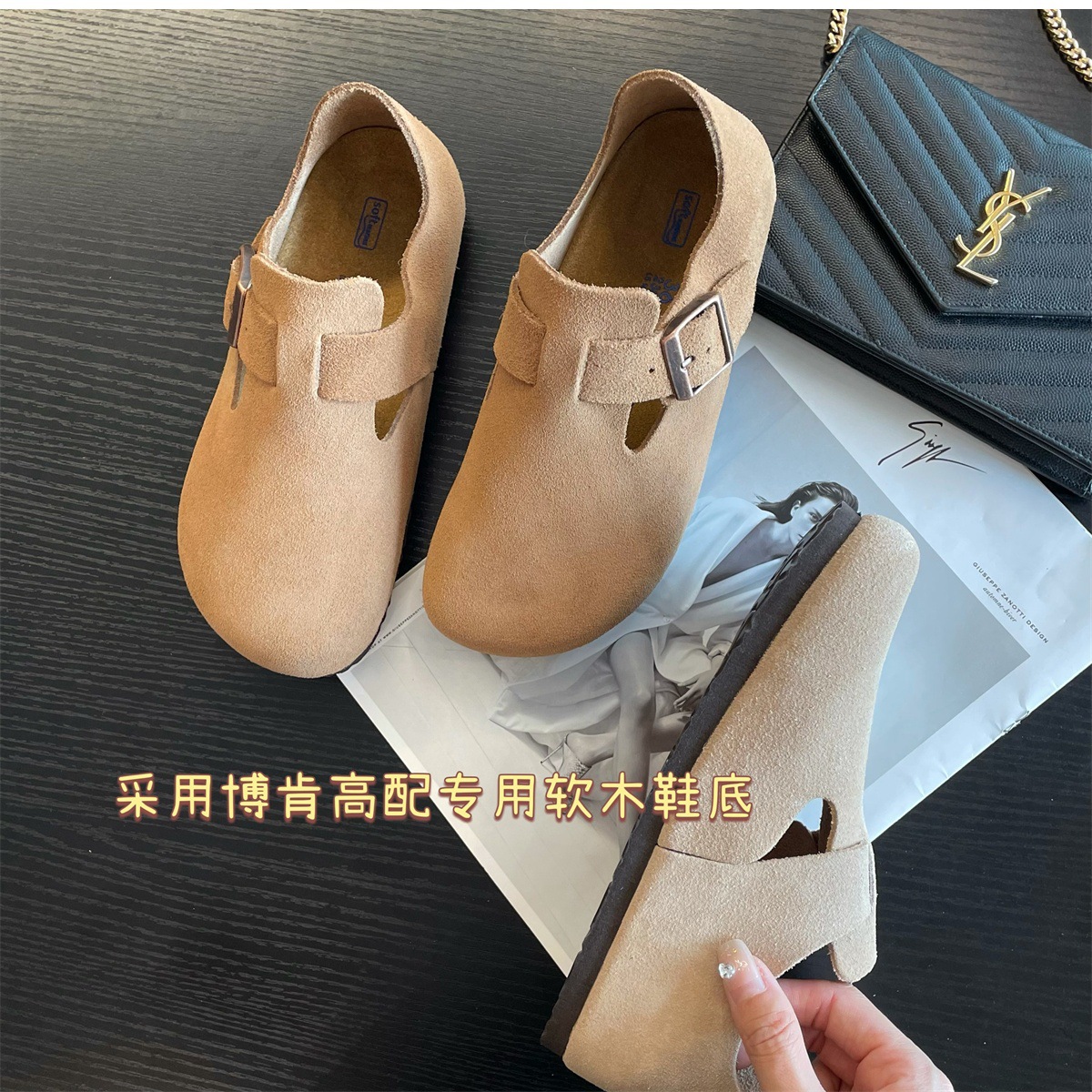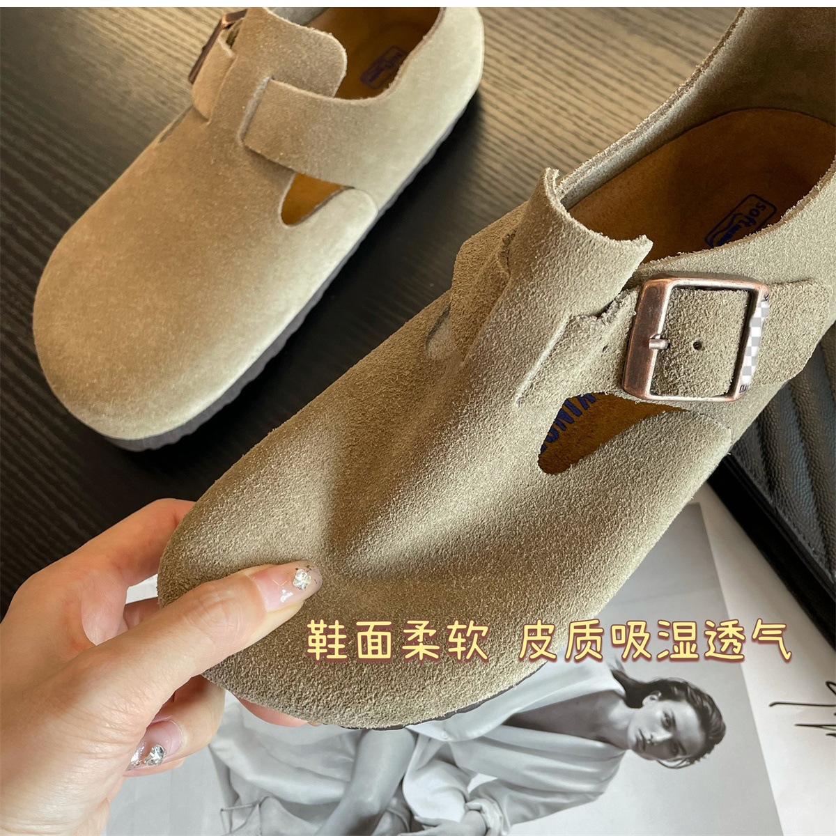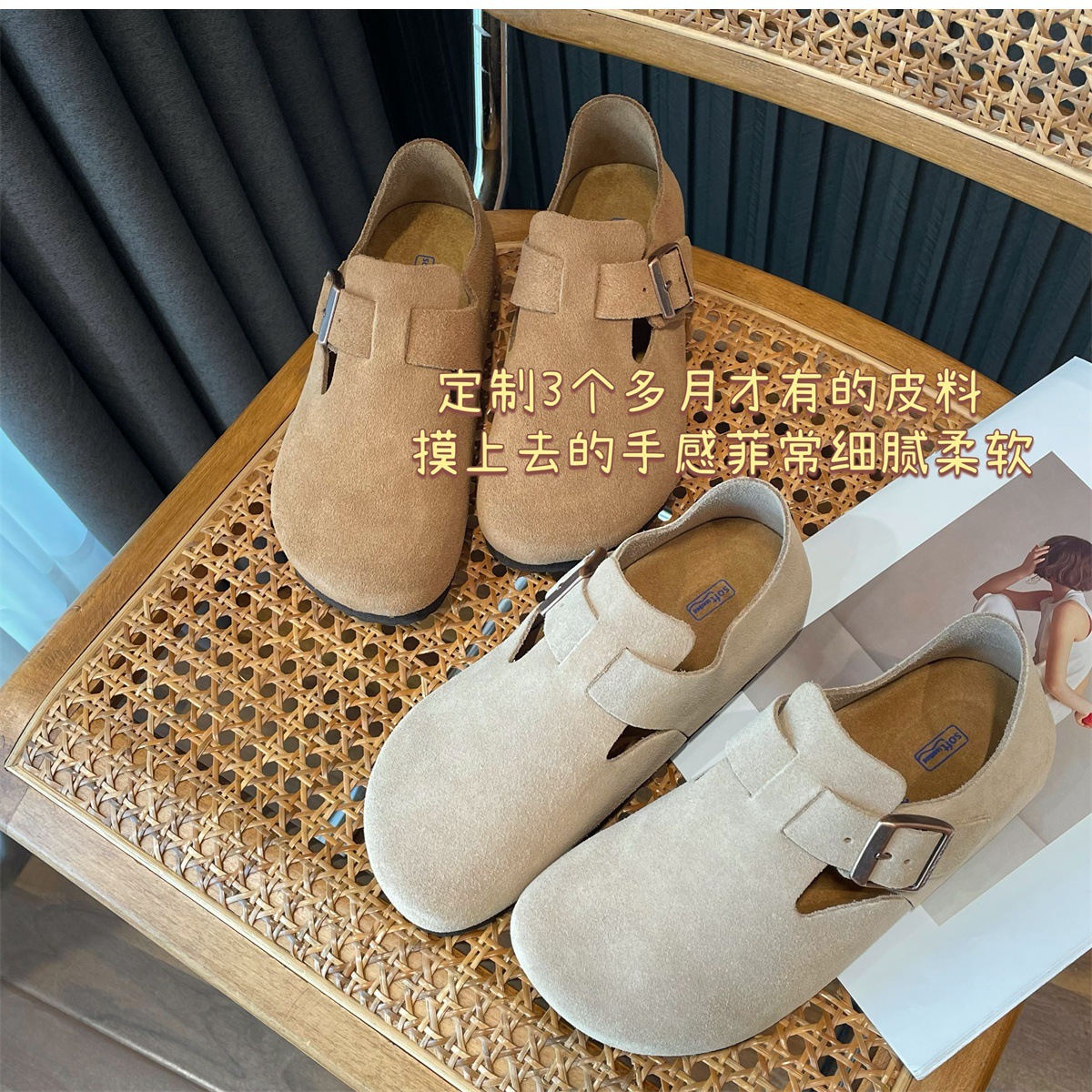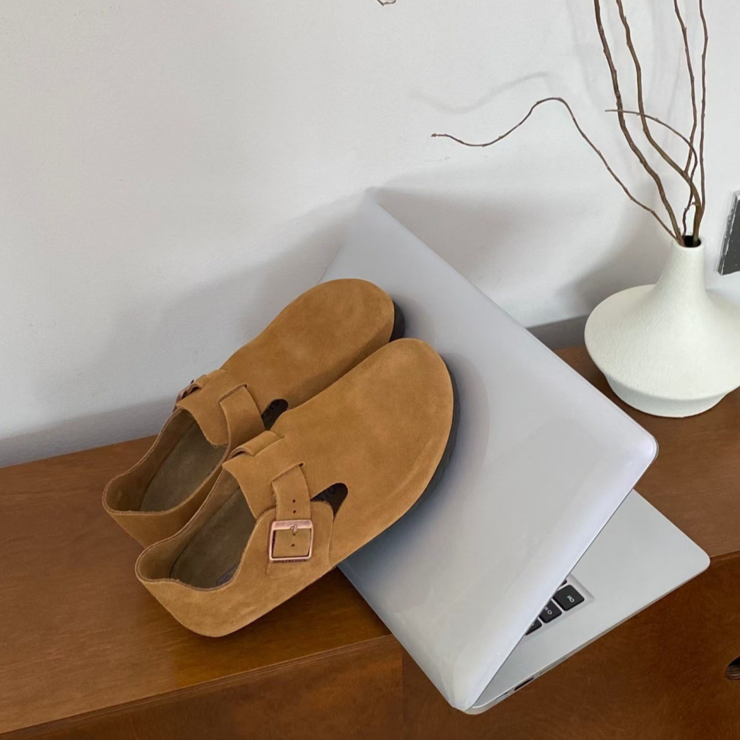 Sangpo High Version Pure Cowhide Cork Baotou Bocken 신발 2025 봄과 가을 새로운 게으른 보켄 여성을위한 모든 것을 포함하는 싱글 신발스토어 가기