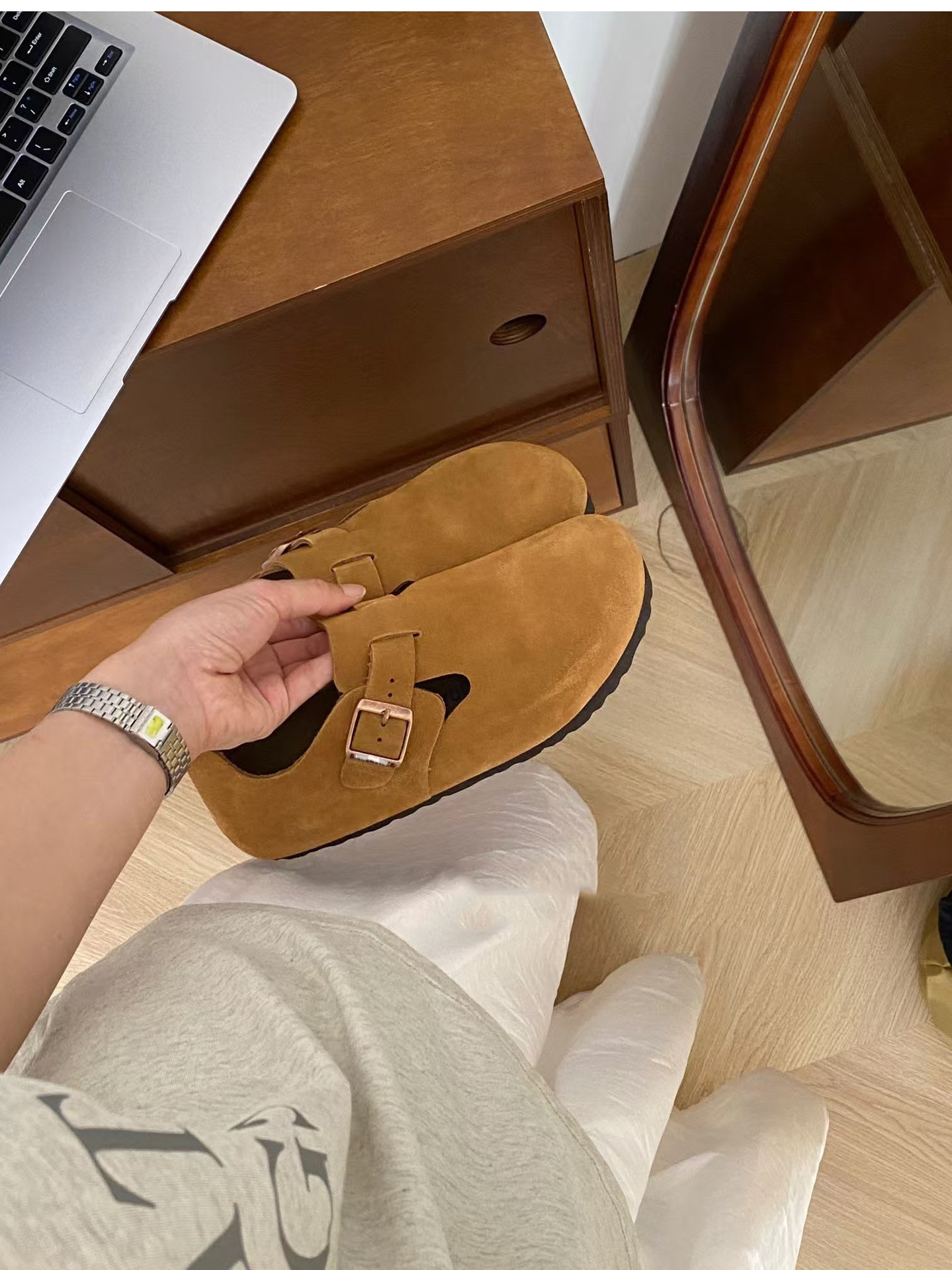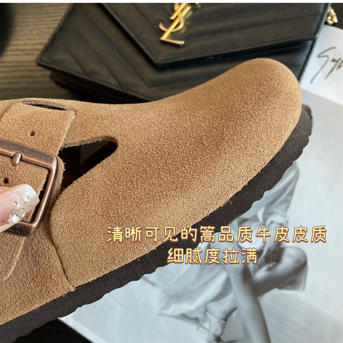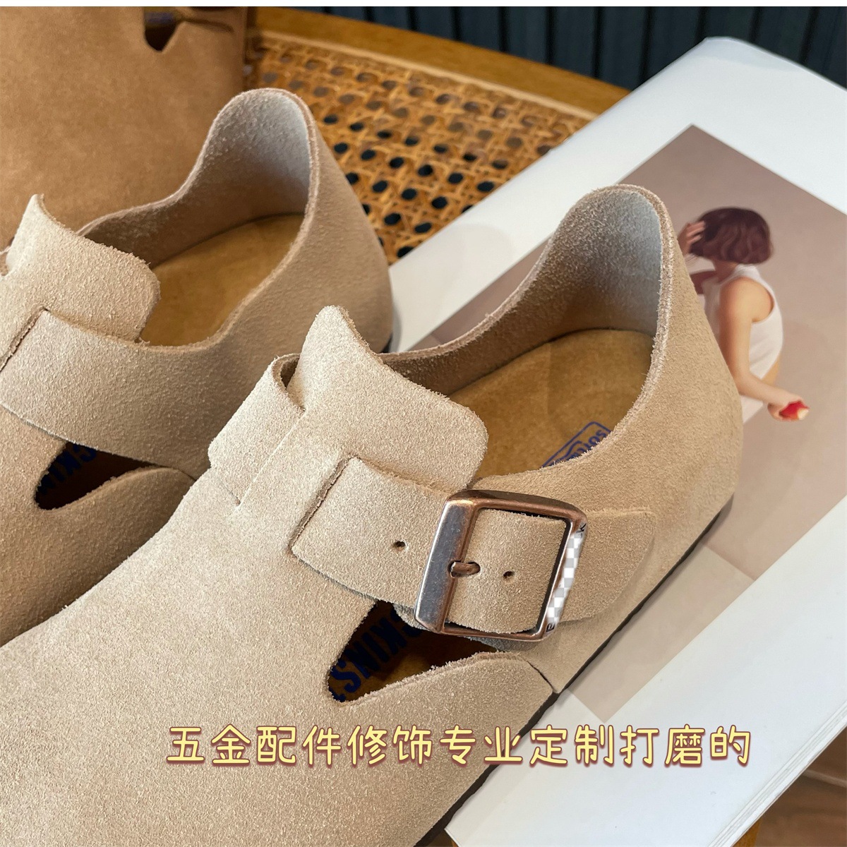 Sangpo High Version Pure Cowhide Cork Baotou Bocken 신발 2025 봄과 가을 새로운 게으른 보켄 여성을위한 모든 것을 포함하는 싱글 신발스토어 가기