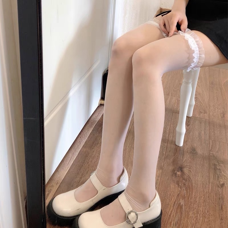 여신 필수 검은 실크 멜빵 스타킹 레이스 무릎 양말 높은 배럴 붉은 가장자리 재미있는 허벅지 양말 JK 슬림 스타킹스토어 가기
