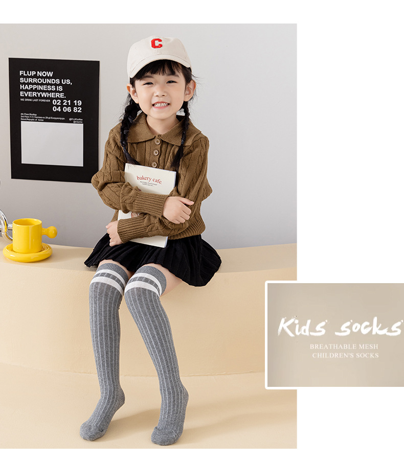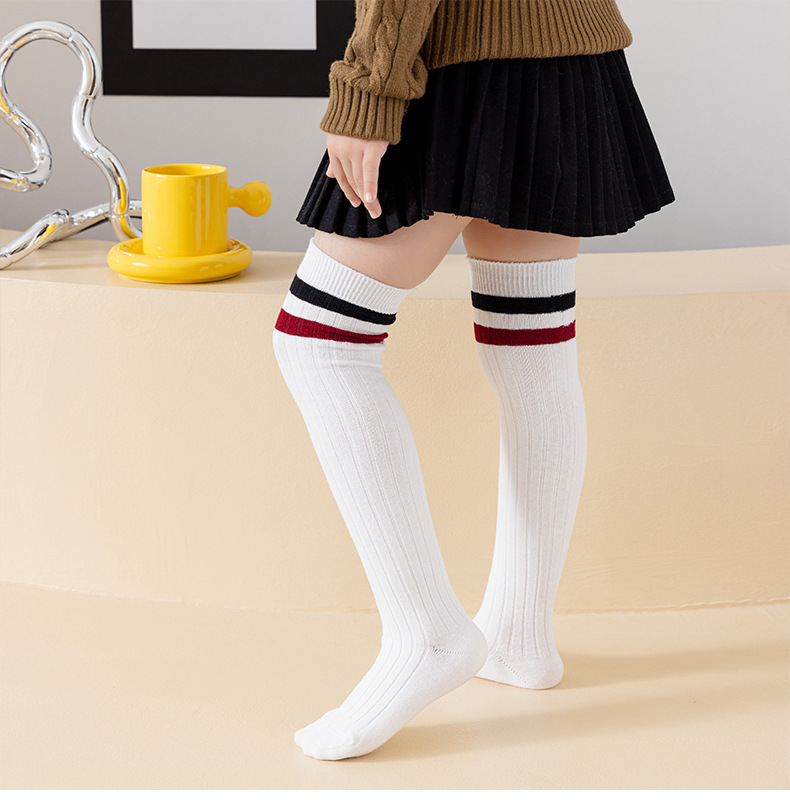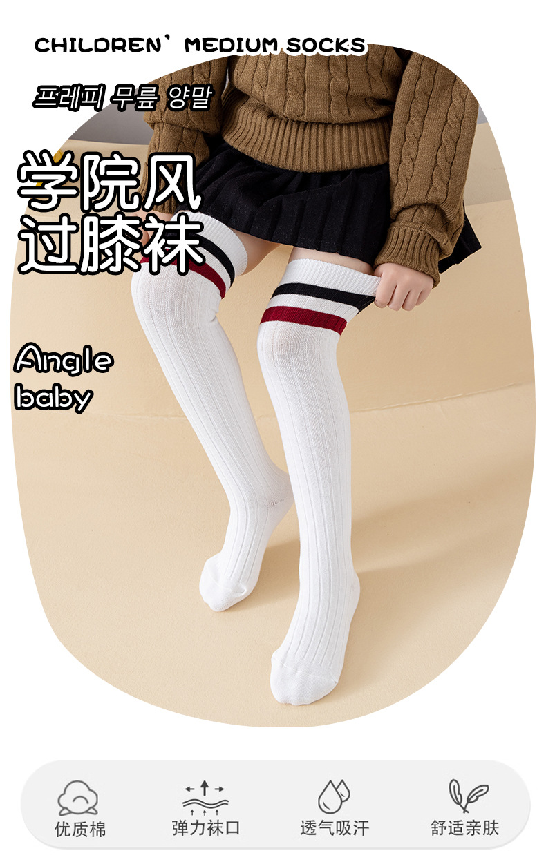 소녀 스타킹 봄 및 여름 면화 스타킹 중 및 빅 어린이 유행 높은 스타킹 학생 2 바 학업 스타일 봄과 가을 무릎 양말