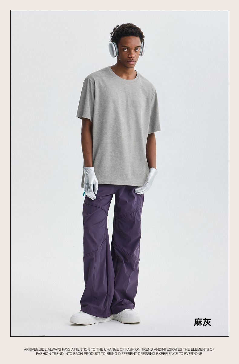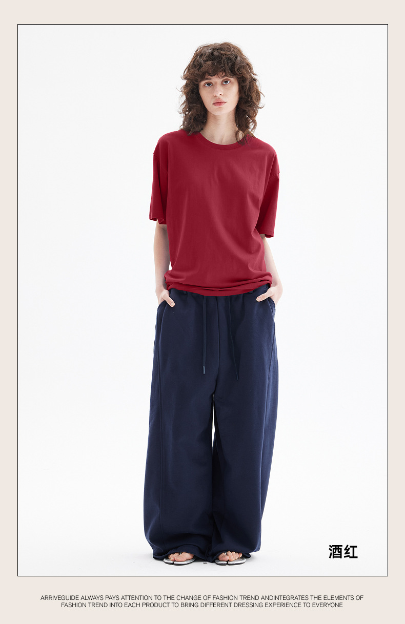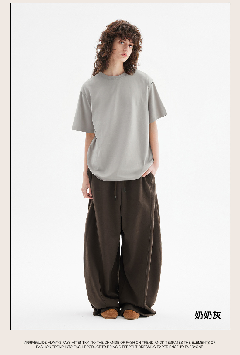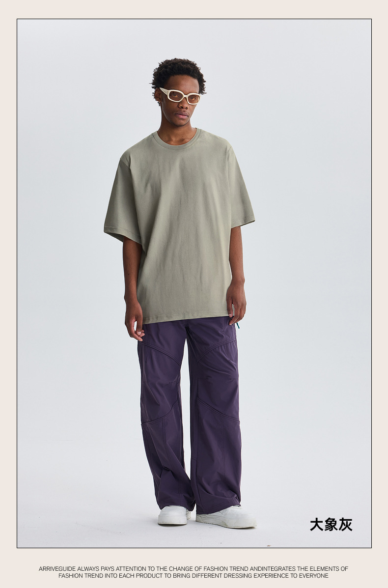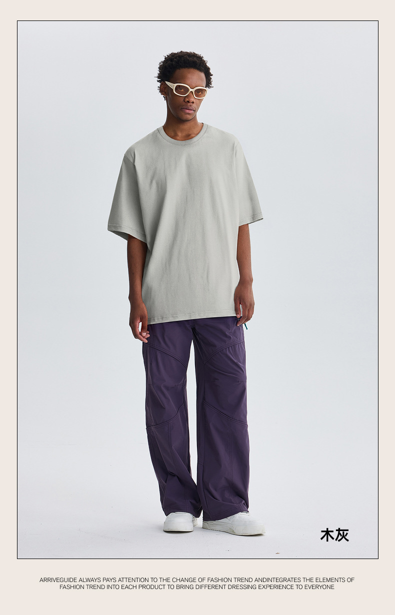240g 남성 라운드넥 티셔츠 일반형 티셔츠 청년 캐주얼 단색 루즈핏 순면 반팔 티셔츠 통기성 땀 흡수