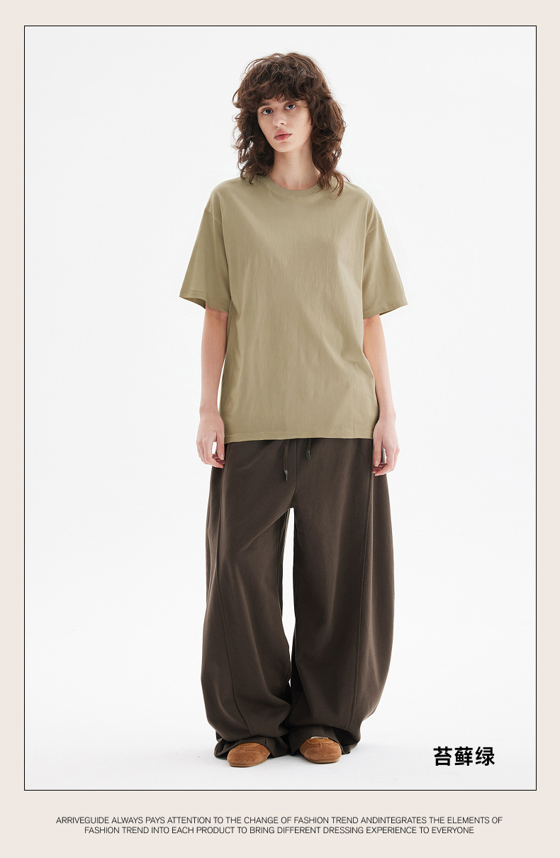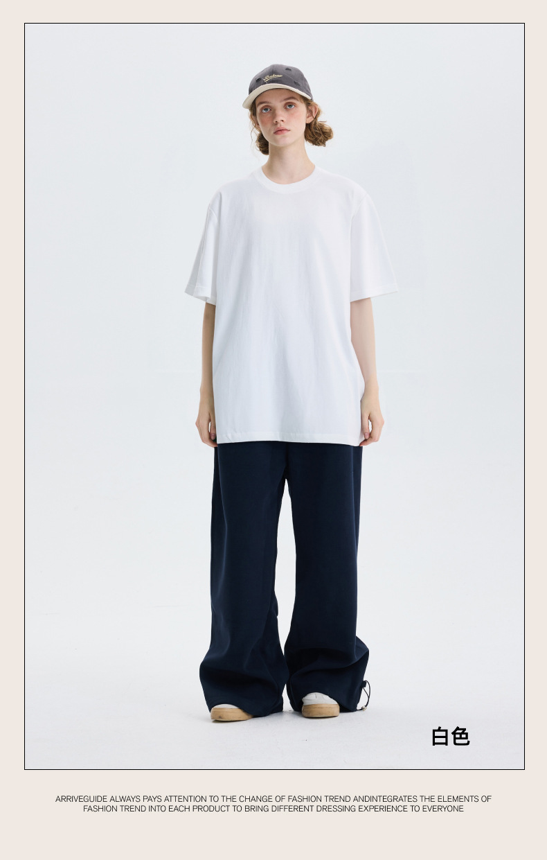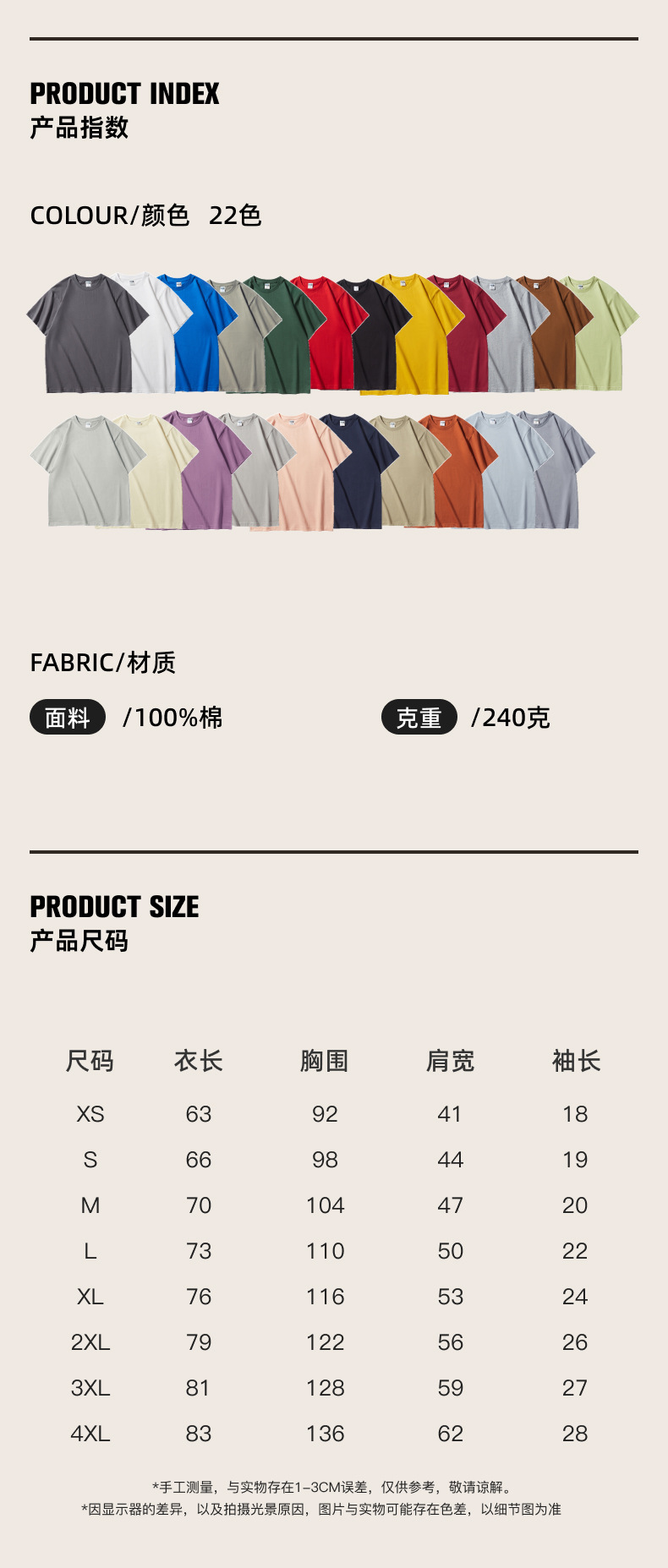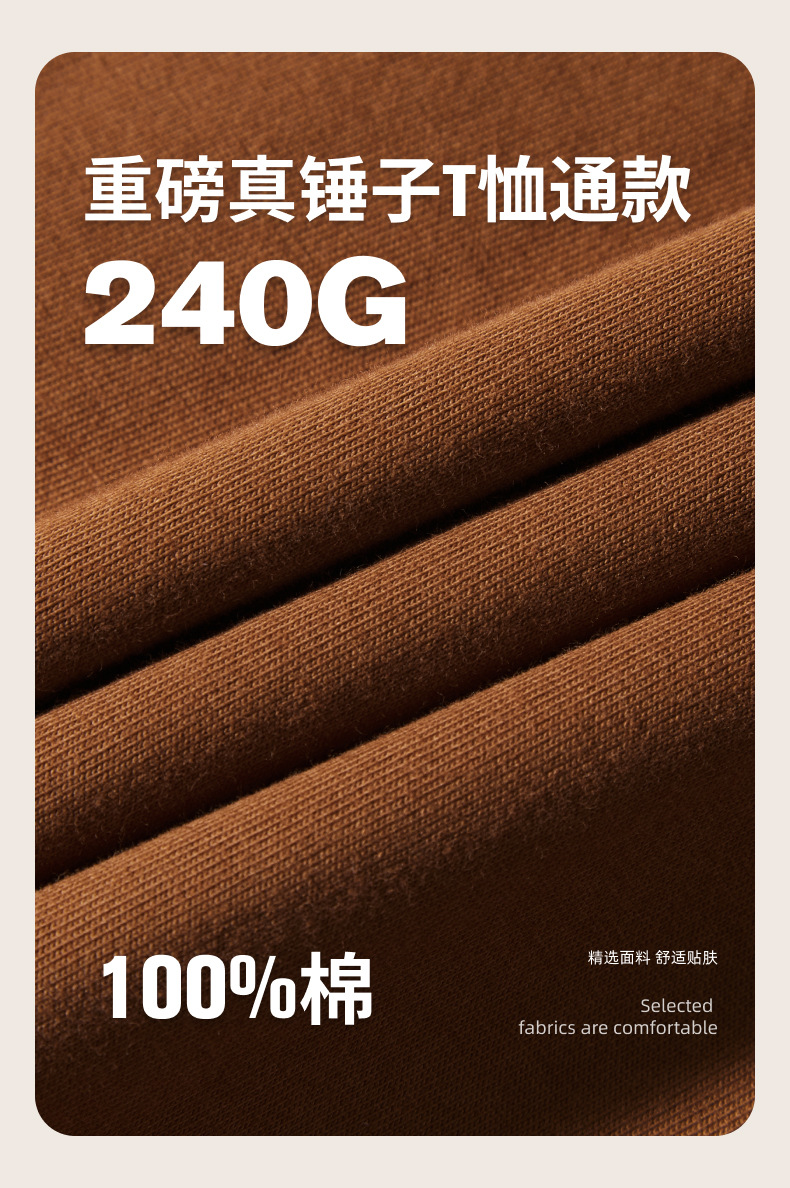 240g 남성 라운드넥 티셔츠 일반형 티셔츠 청년 캐주얼 단색 루즈핏 순면 반팔 티셔츠 통기성 땀 흡수스토어 가기