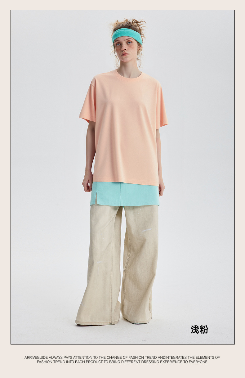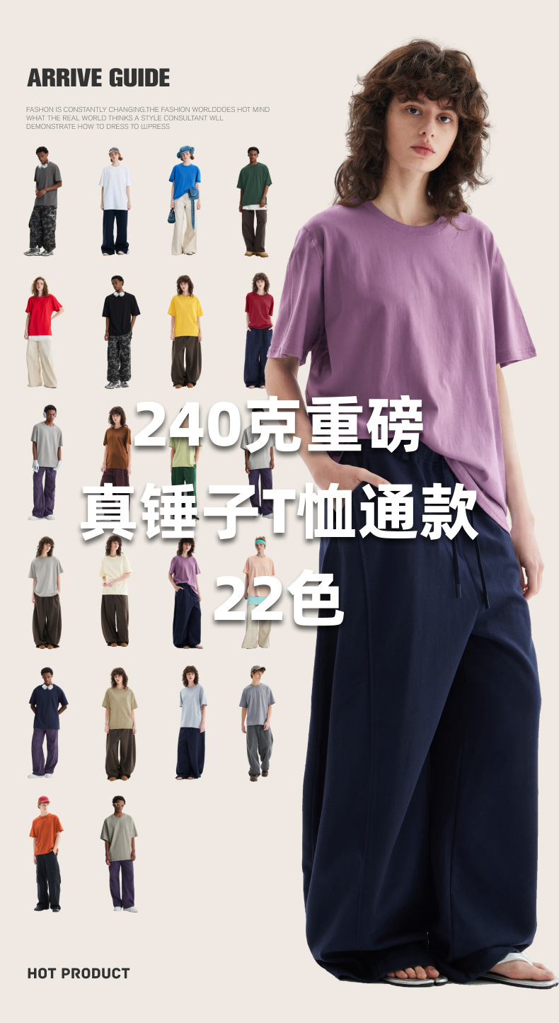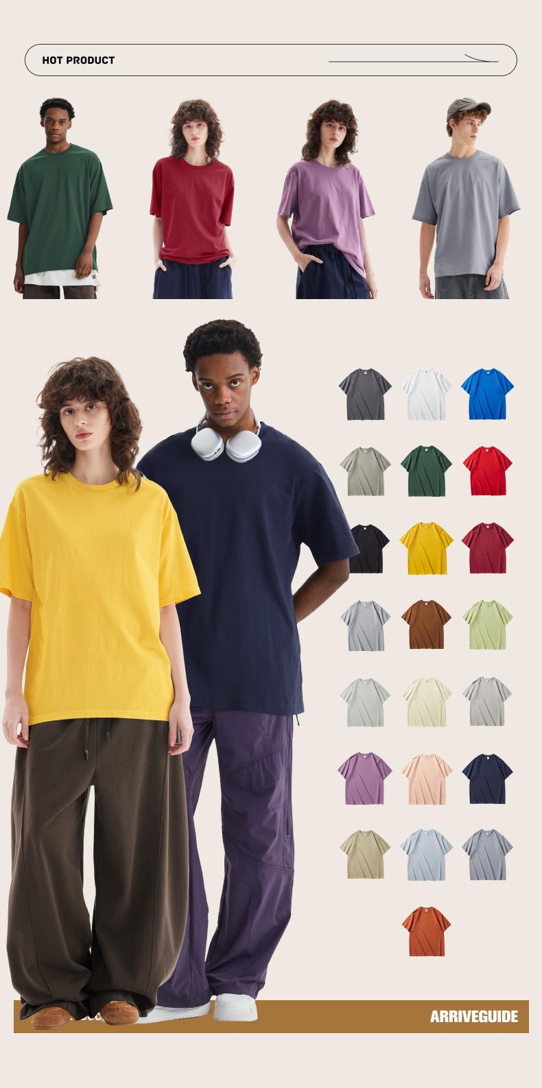 240g 남성 라운드넥 티셔츠 일반형 티셔츠 청년 캐주얼 단색 루즈핏 순면 반팔 티셔츠 통기성 땀 흡수스토어 가기