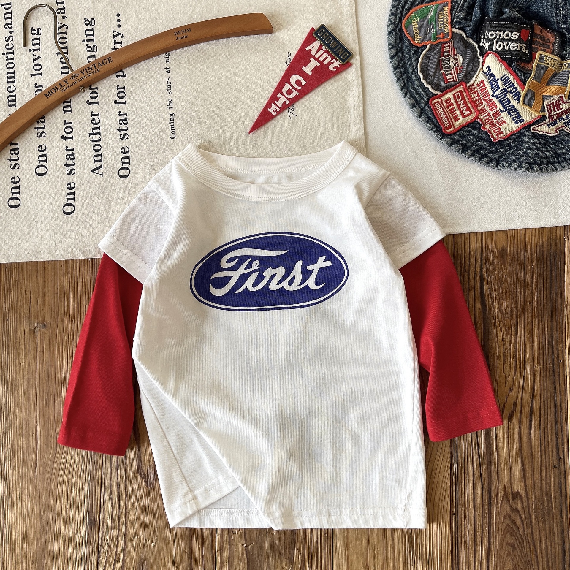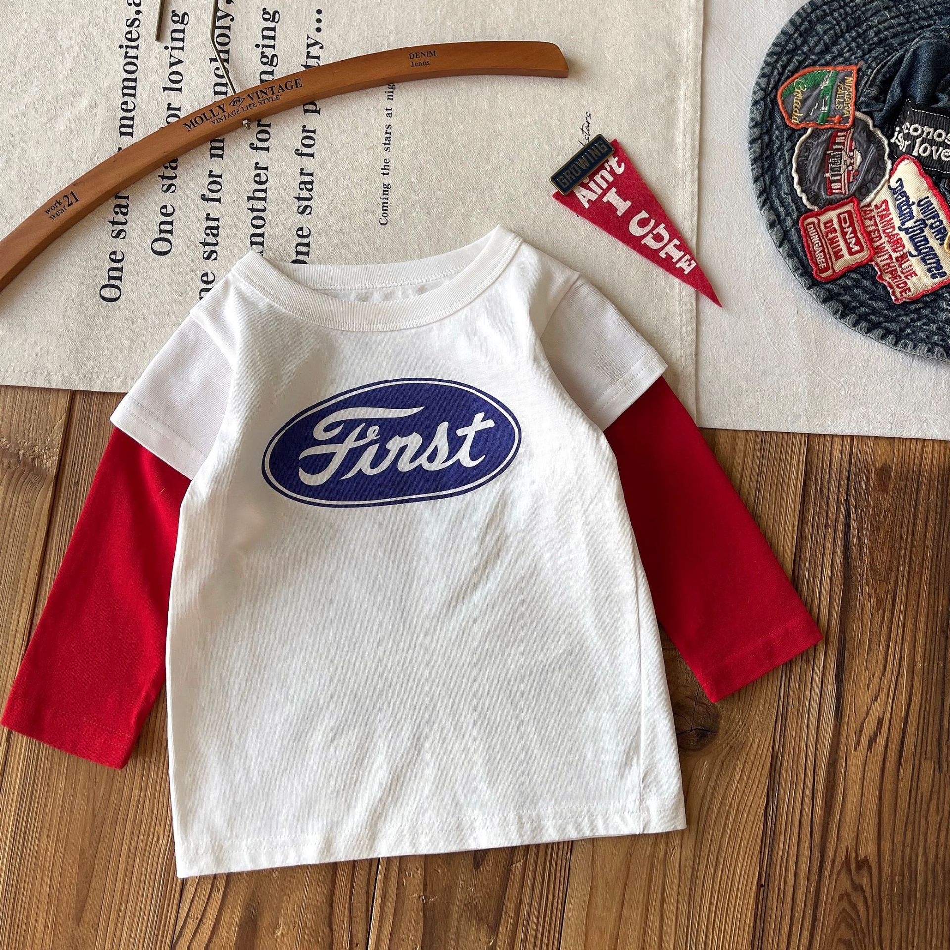 [재고] 일본 중세 아동복 DD 어린이 가짜 2 글자 긴팔 티셔츠스토어 가기