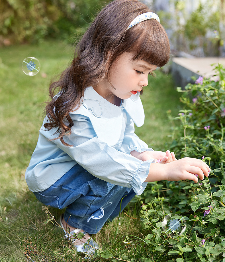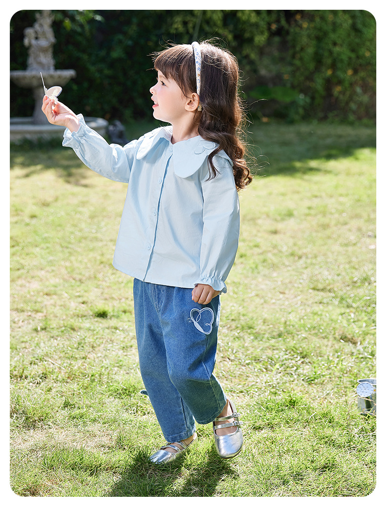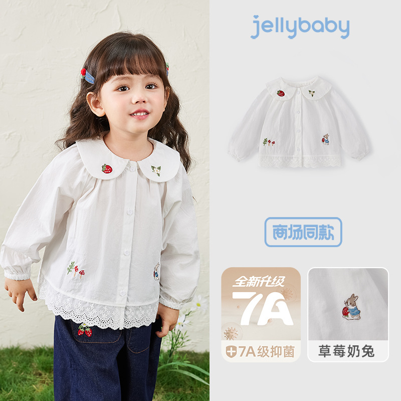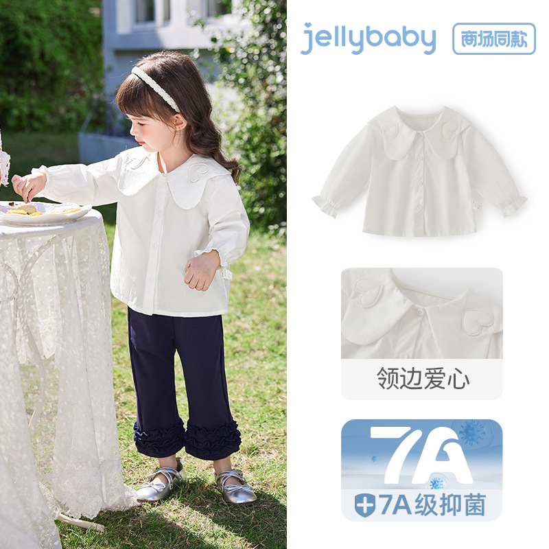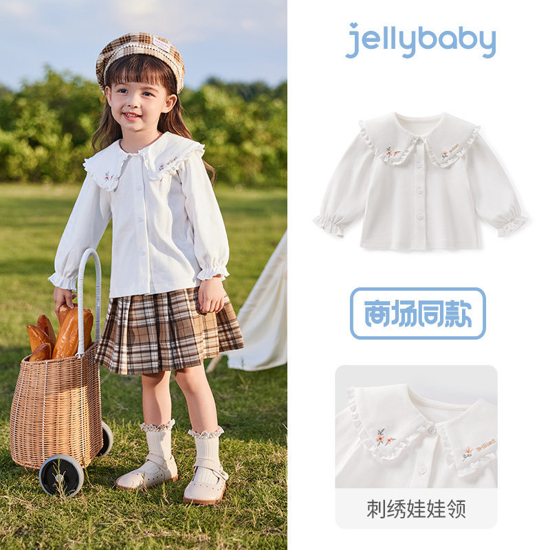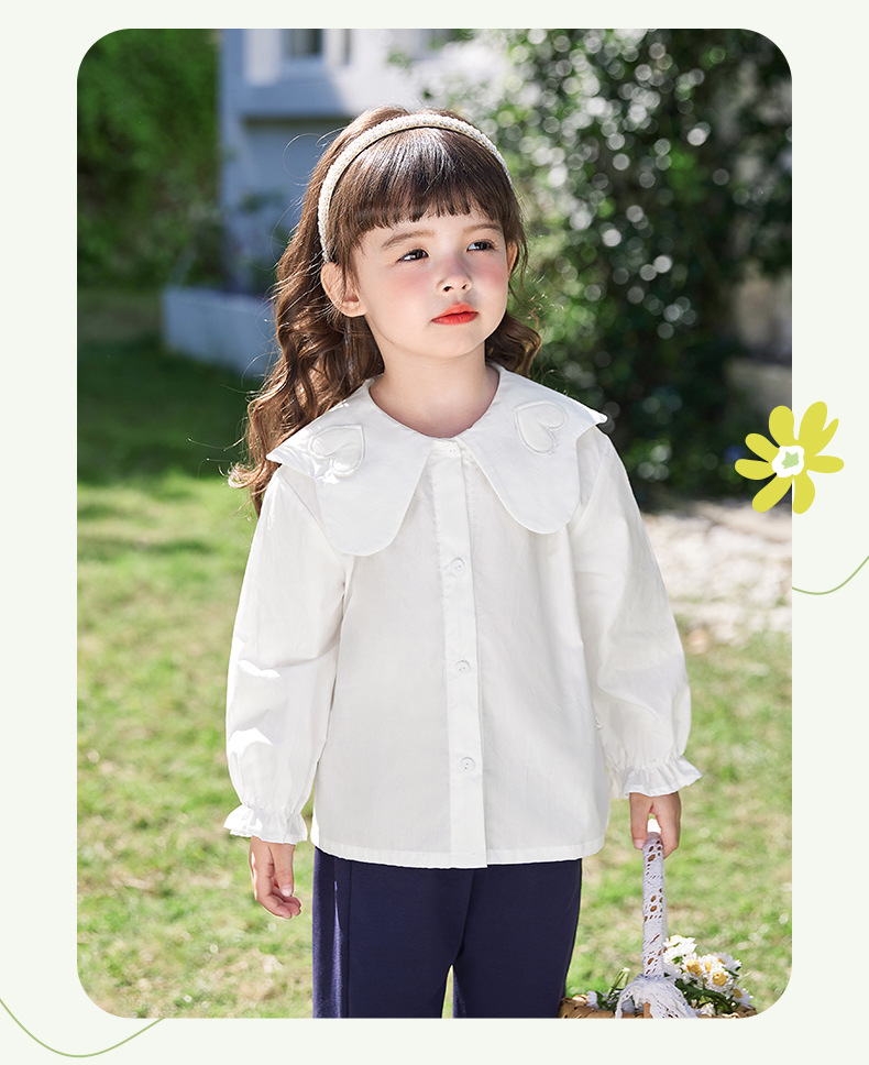어린이용 흰색 공주 셔츠 봄 가을 아기 봄옷 상의 5세 여아용 인형 칼라 긴팔 프렌치 가디건스토어 가기
