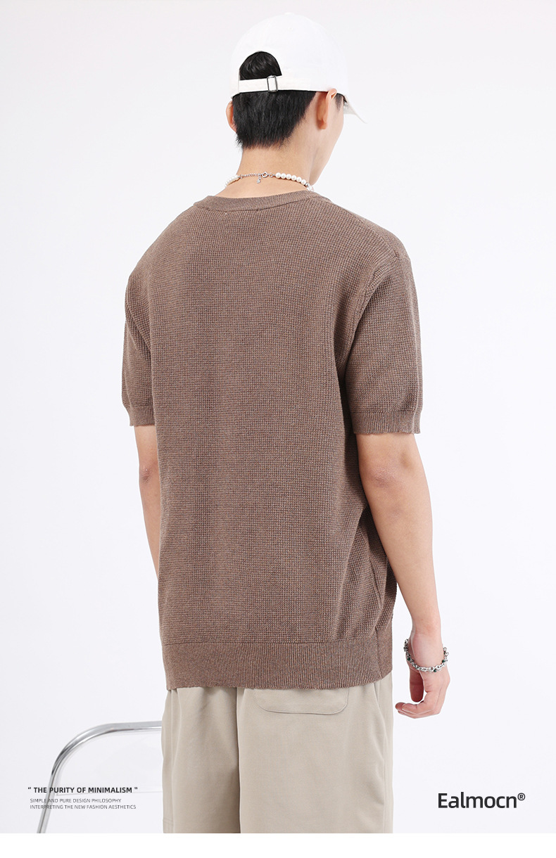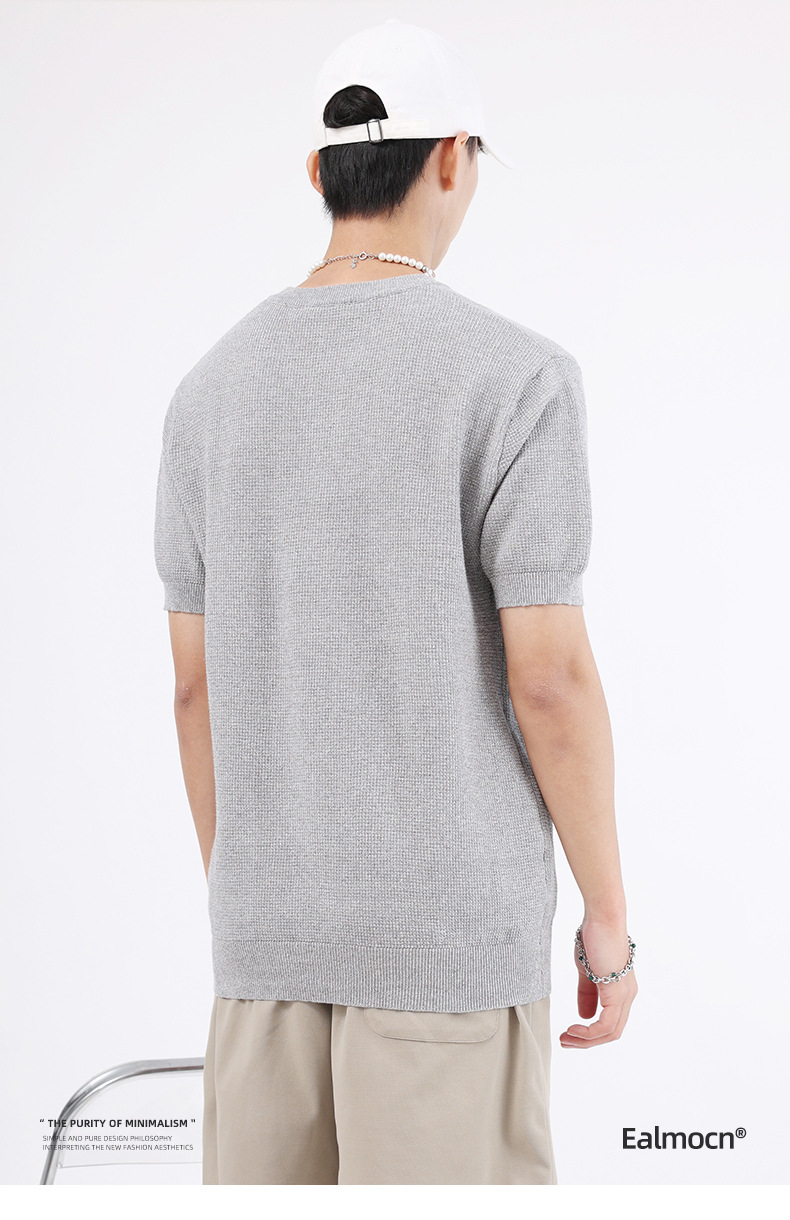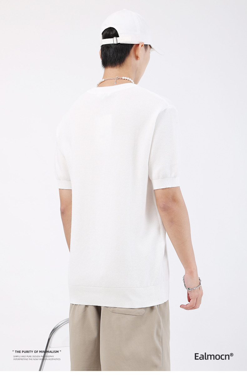 남성용 파인애플 패턴 헨리넥 니트 반팔 티셔츠 남성 여름용 고급스럽고 고급스러운 캐주얼 남성용 상의스토어 가기