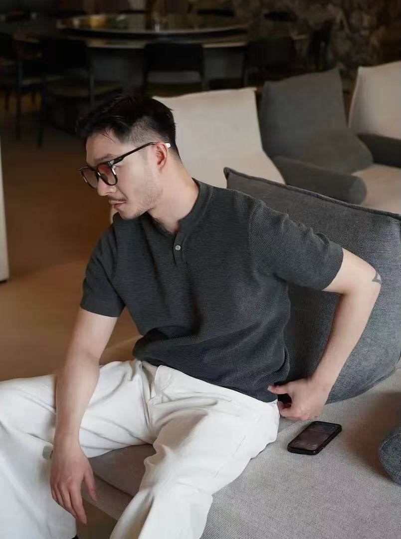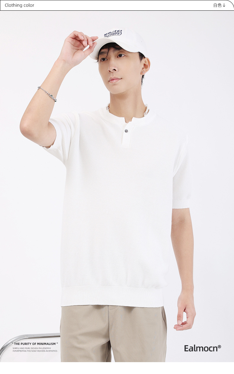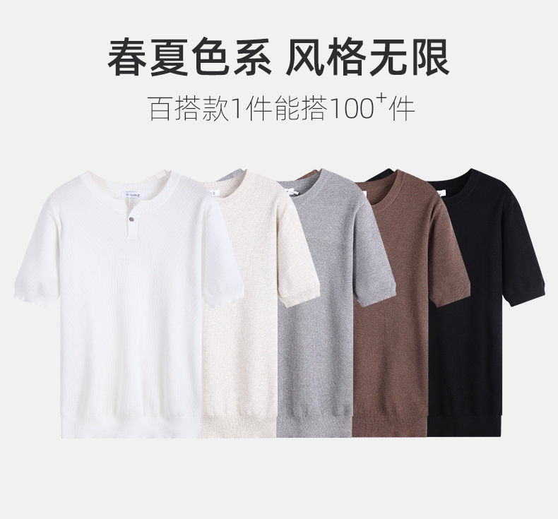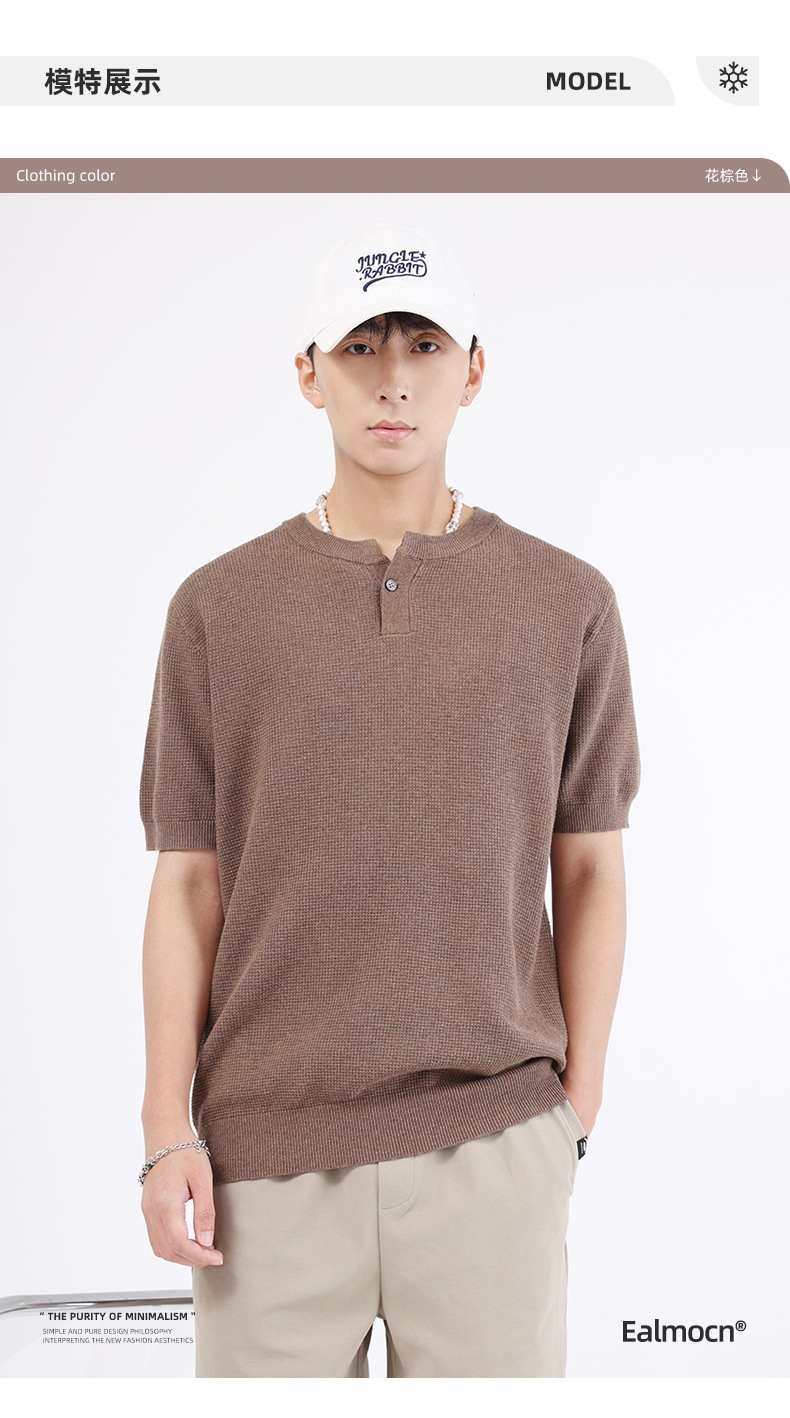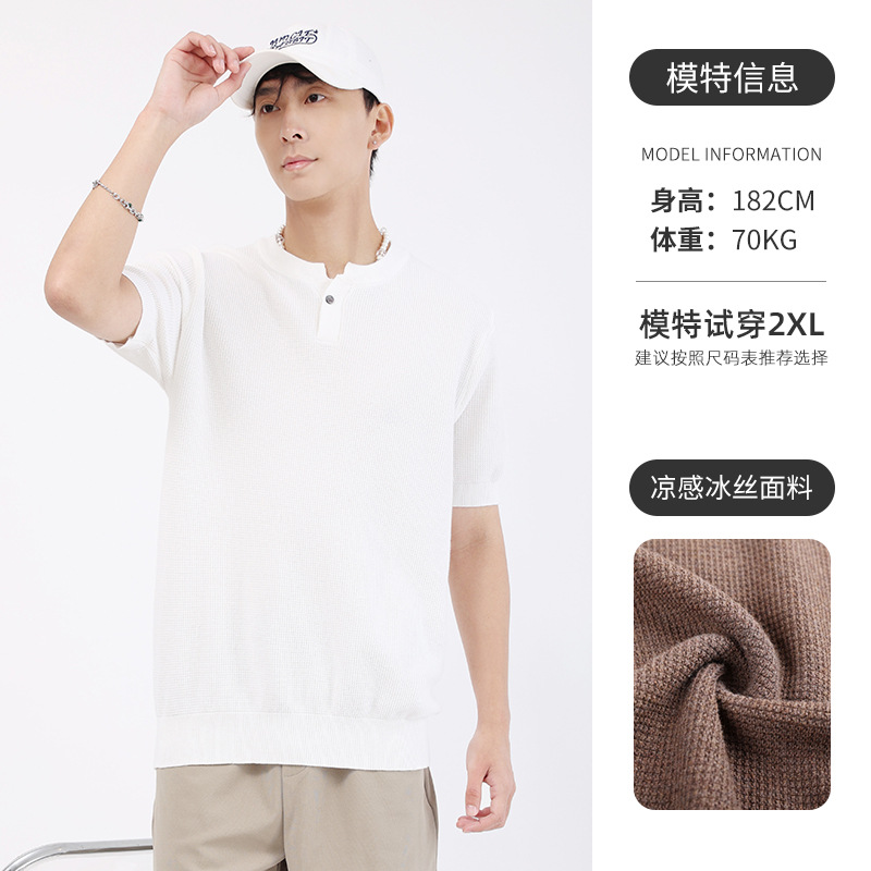 남성용 파인애플 패턴 헨리넥 니트 반팔 티셔츠 남성 여름용 고급스럽고 고급스러운 캐주얼 남성용 상의