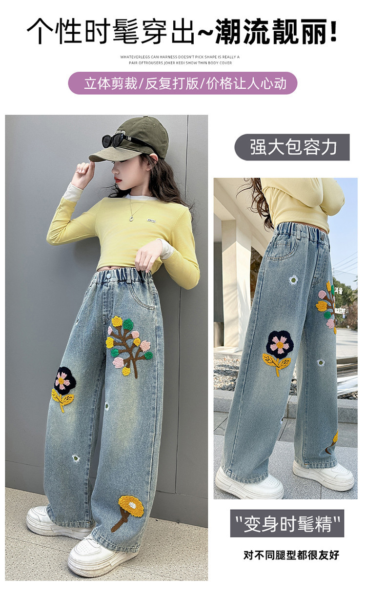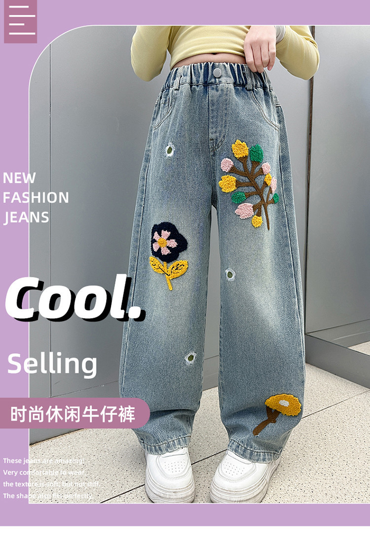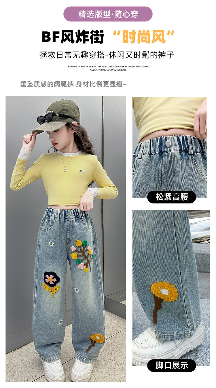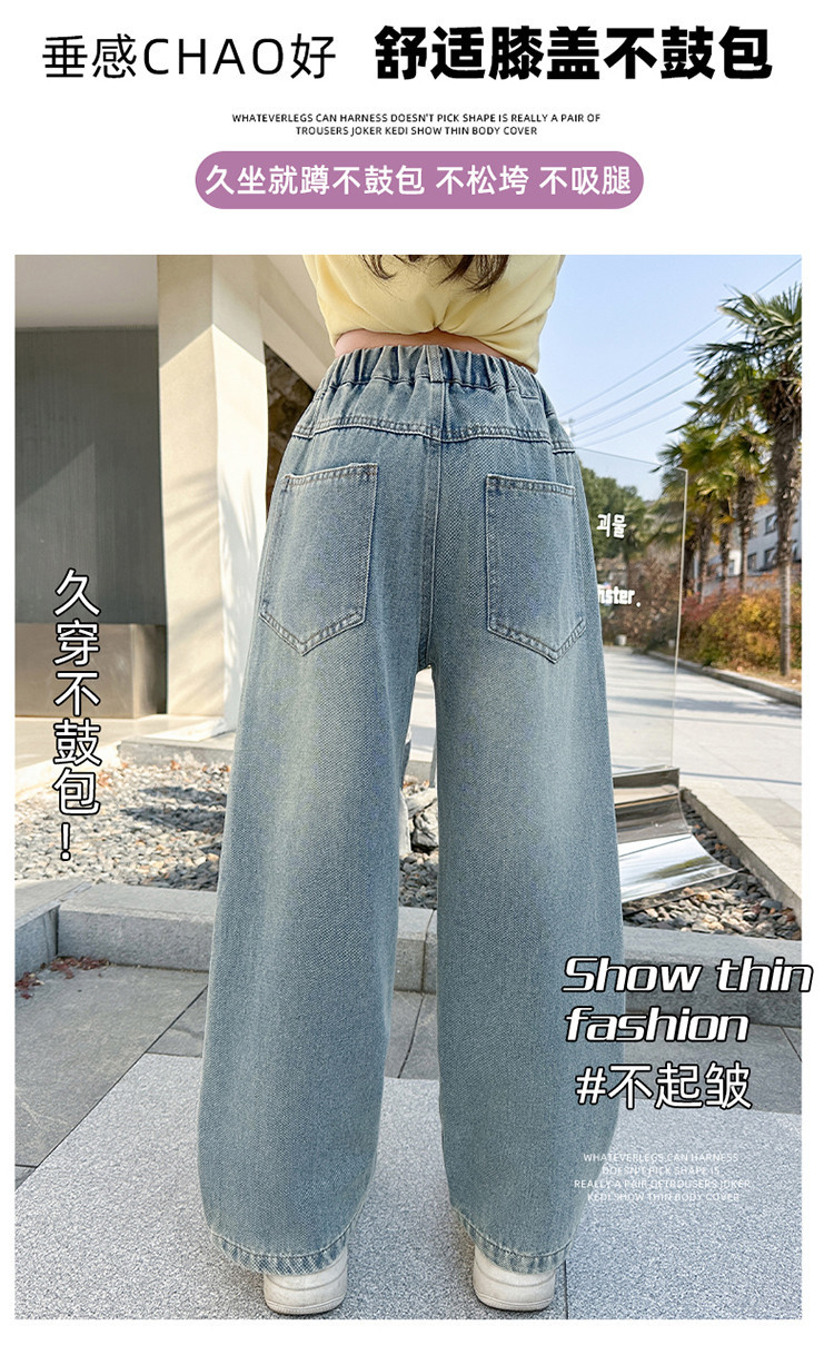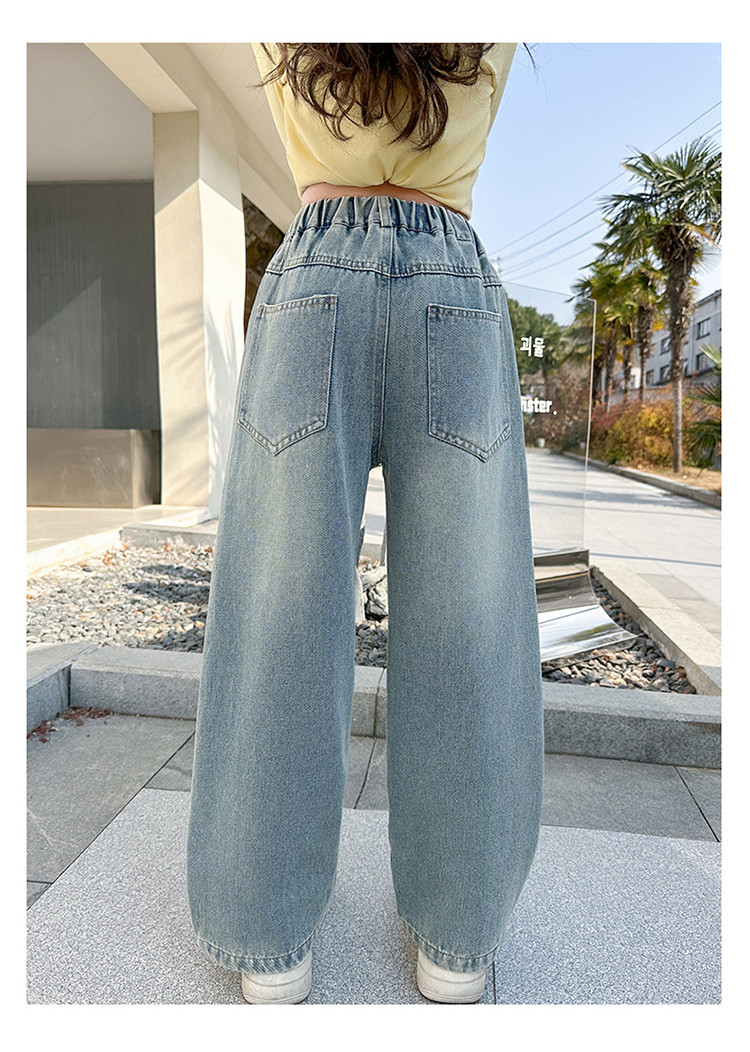 소녀 바지 봄과 가을 2025 새로운 어린이 봄 청바지 큰 소년과 소녀 봄 넓은 다리 바지스토어 가기
