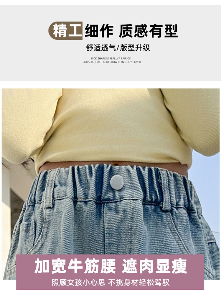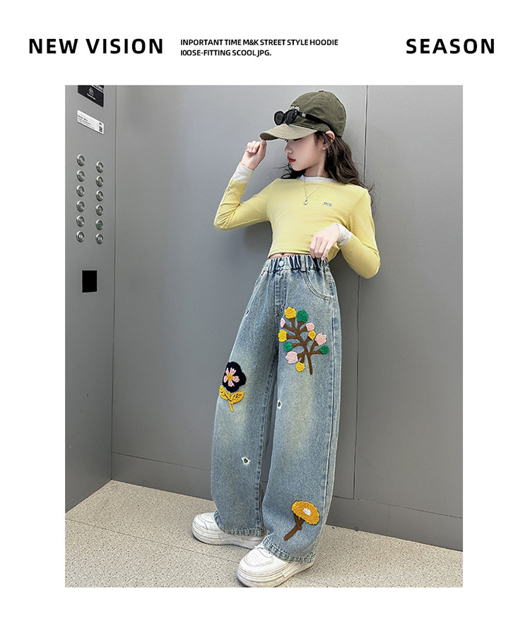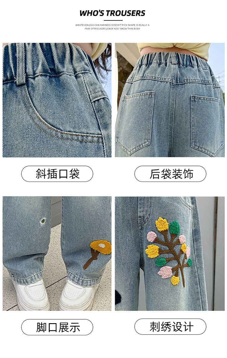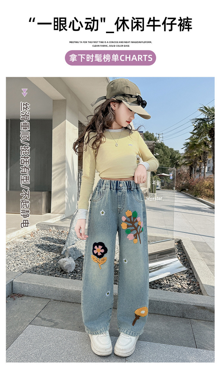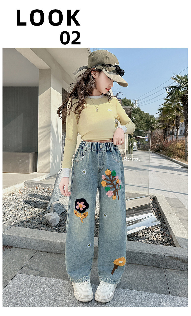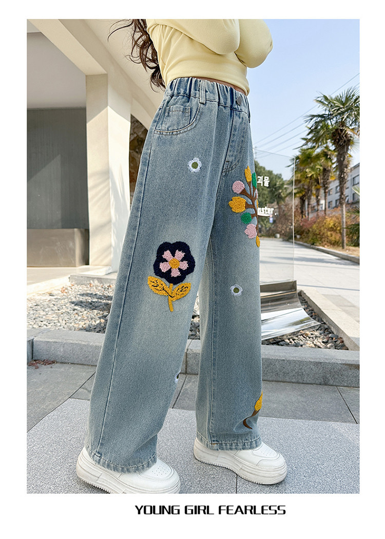 소녀 바지 봄과 가을 2025 새로운 어린이 봄 청바지 큰 소년과 소녀 봄 넓은 다리 바지스토어 가기