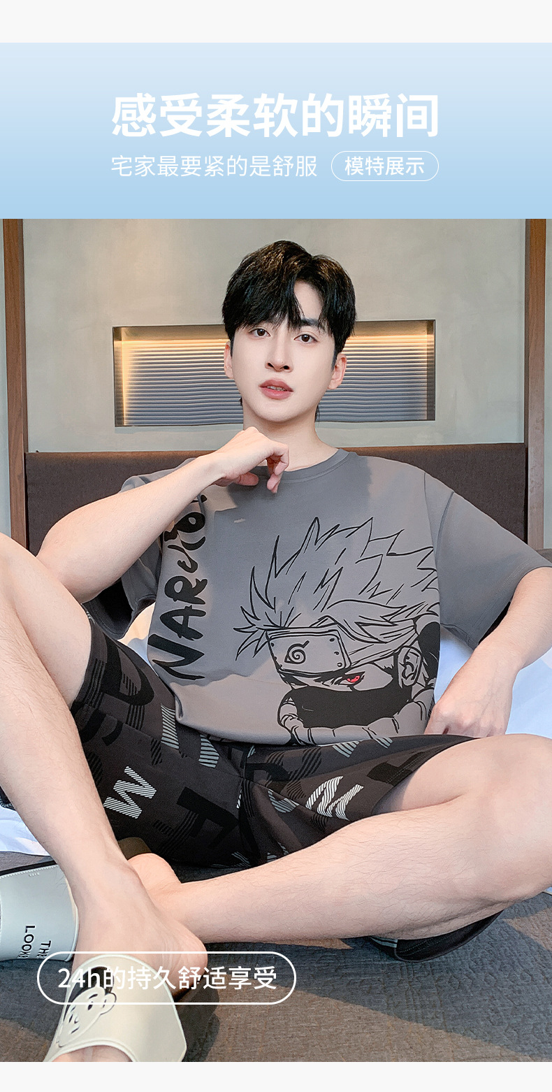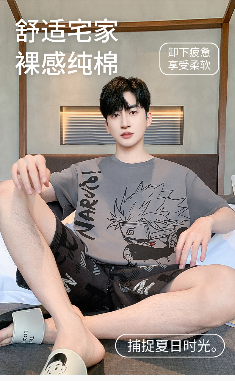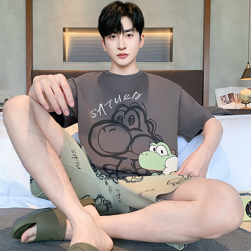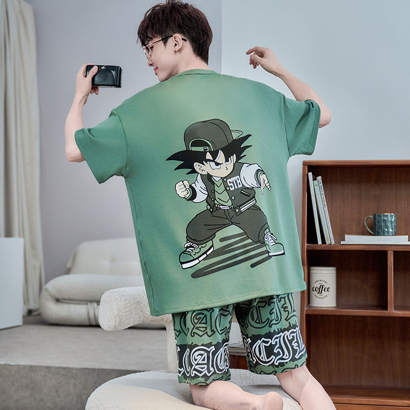 여름 10 대 반팔 순면 파자마 남성 만화 소년 큰 아이 17 세 중학생 홈 의류 플러스 사이즈스토어 가기