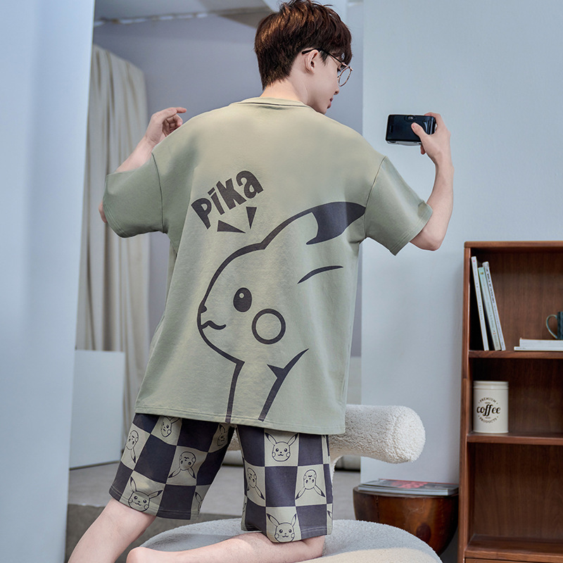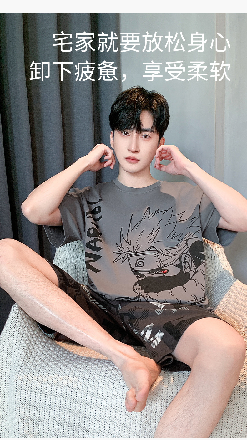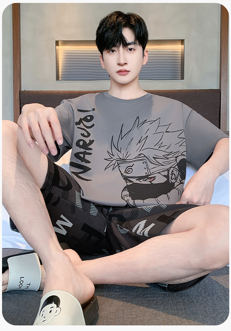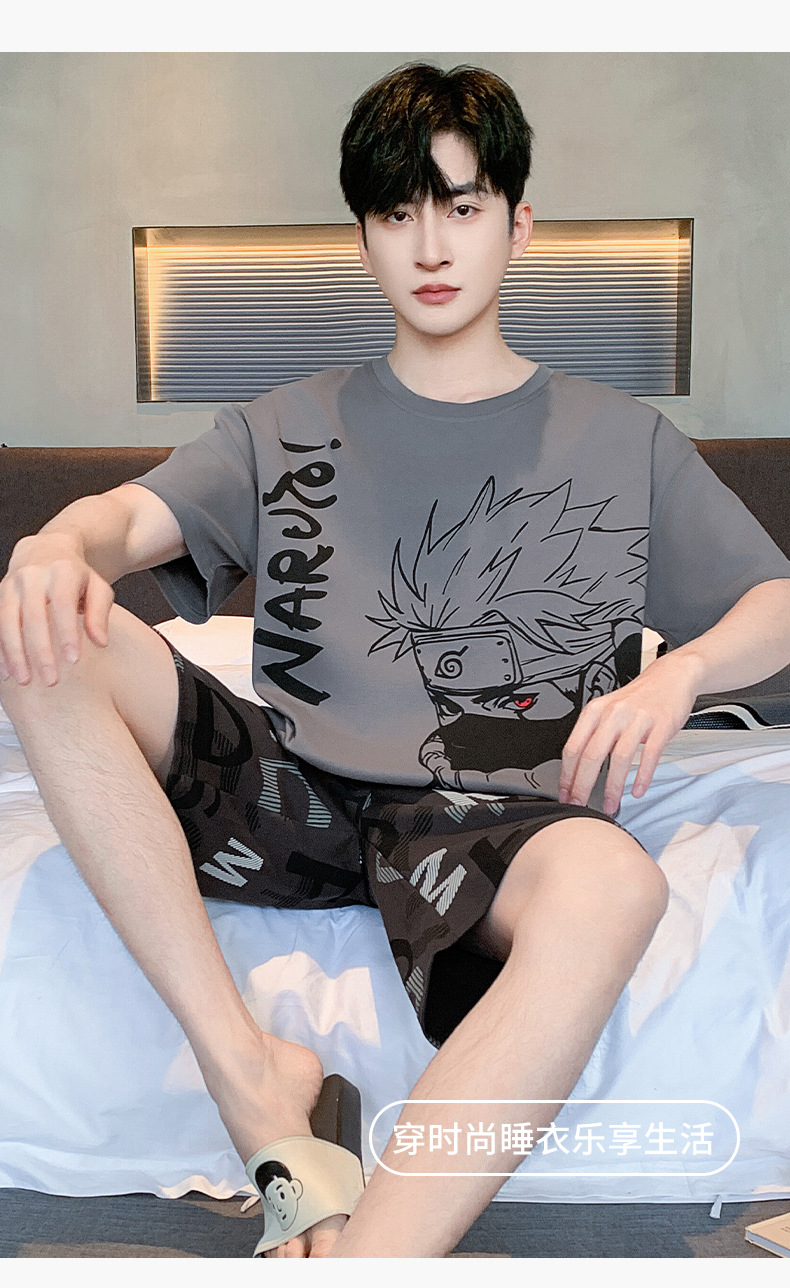 여름 10 대 반팔 순면 파자마 남성 만화 소년 큰 아이 17 세 중학생 홈 의류 플러스 사이즈스토어 가기