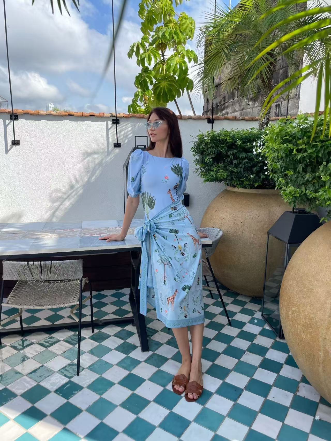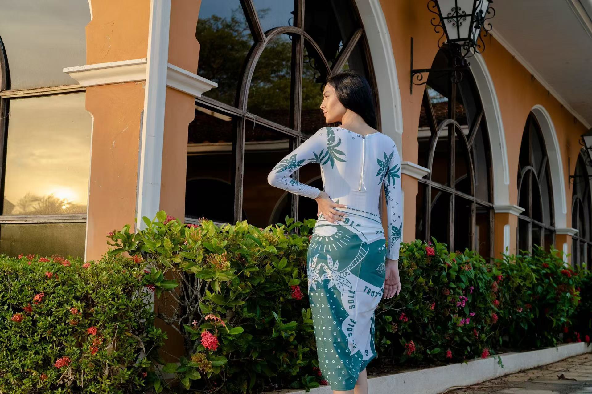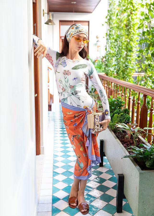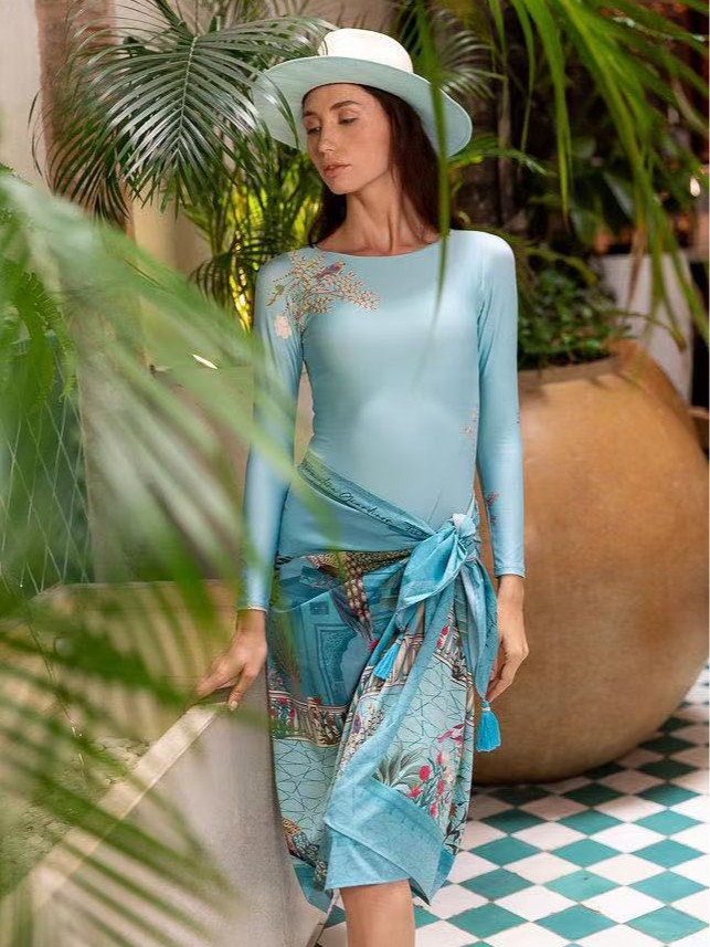 2025 유럽과 미국의 비키니 수영 프린트 자외선 차단제 긴팔 수영복 스커트 크로스보더 아마존 보수적 여성 원피스스토어 가기