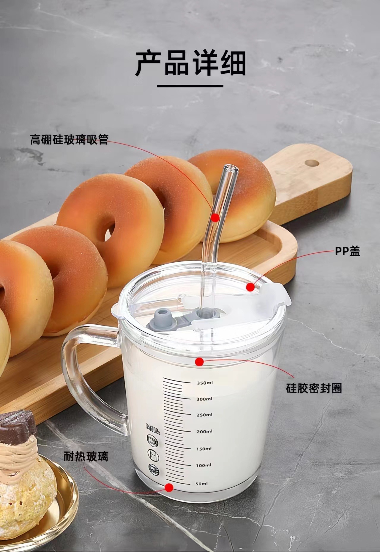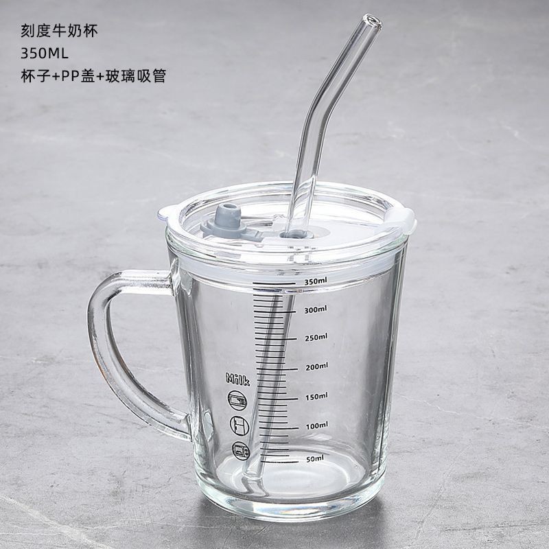 손잡이가 있는 눈금이 있는 유리컵, 빨대가 있는 컵, 우유를 끓이는 컵, 뚜껑이 있는 우유컵, 건강하고 친환경적인 찻잔스토어 가기