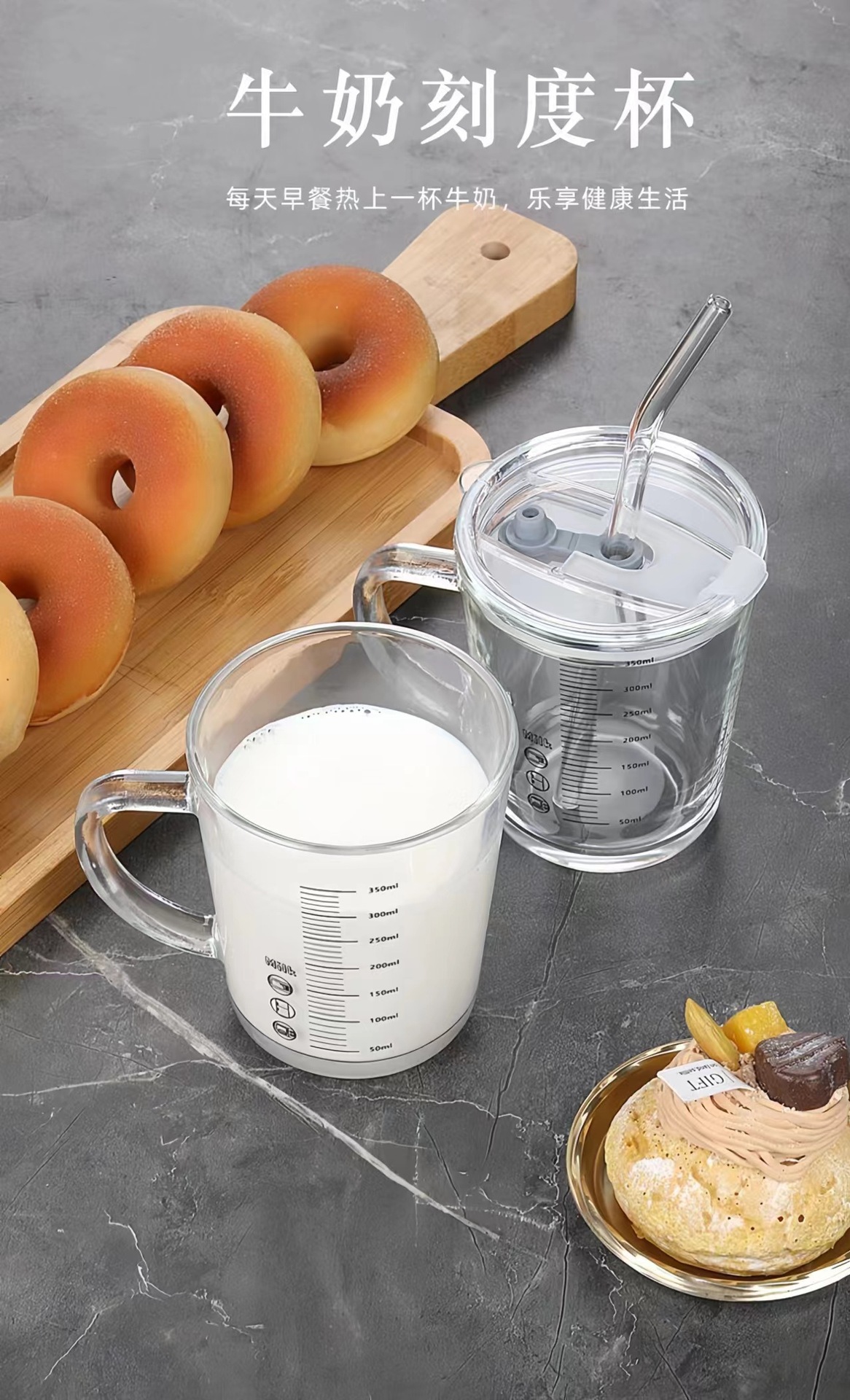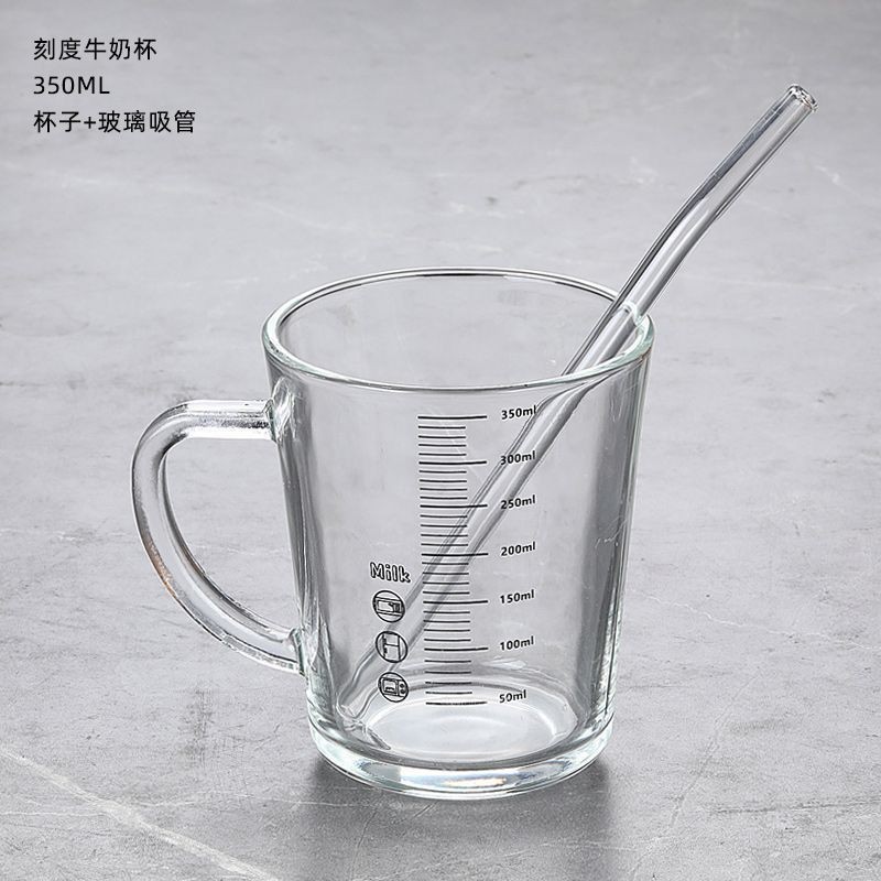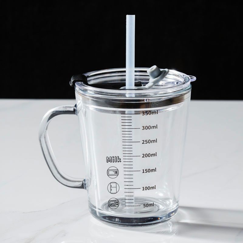 손잡이가 있는 눈금이 있는 유리컵, 빨대가 있는 컵, 우유를 끓이는 컵, 뚜껑이 있는 우유컵, 건강하고 친환경적인 찻잔