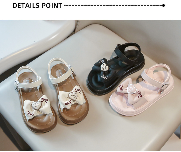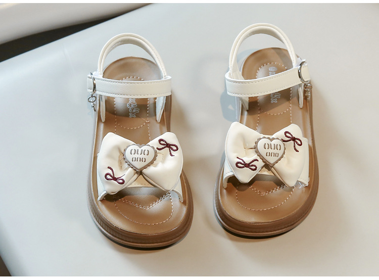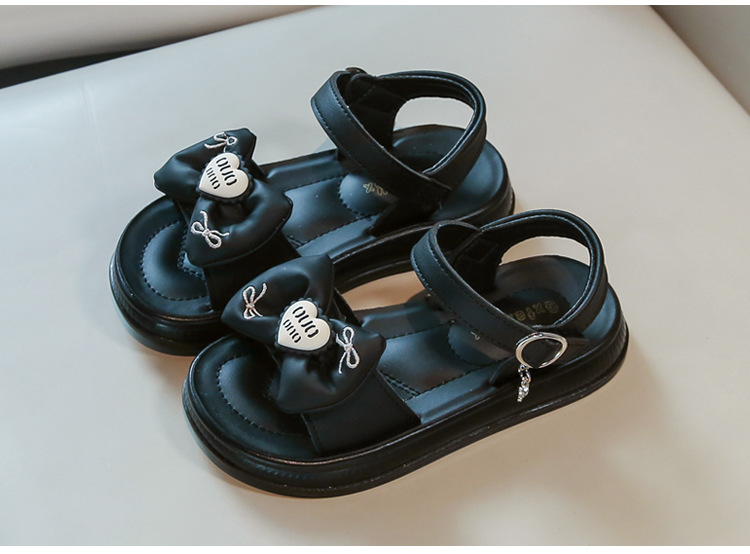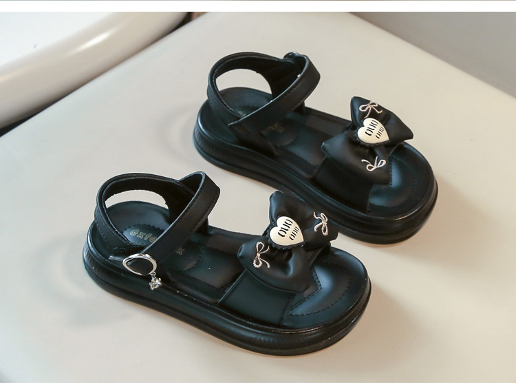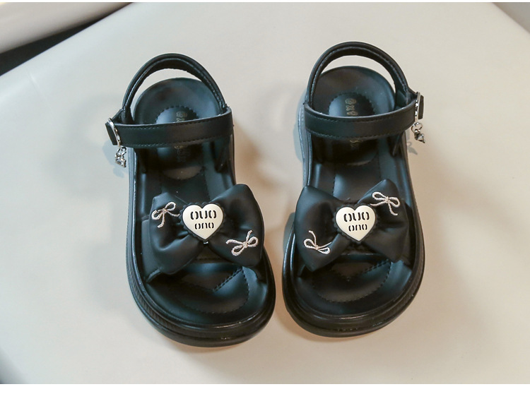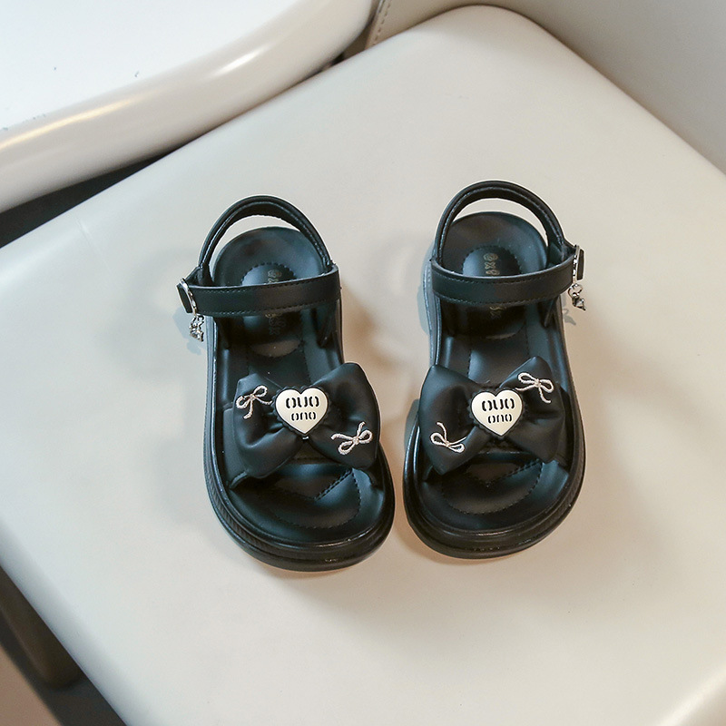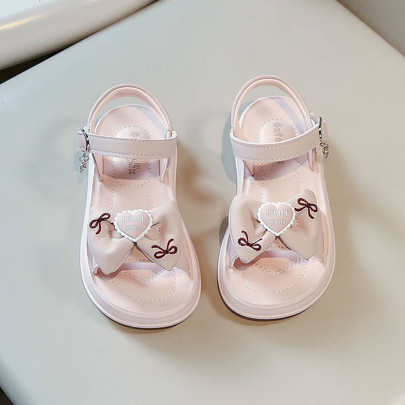 어린이 해변용 신발 2026년 여름 귀여운 리본 하트 여아 단색 샌들 소중대형 아동화