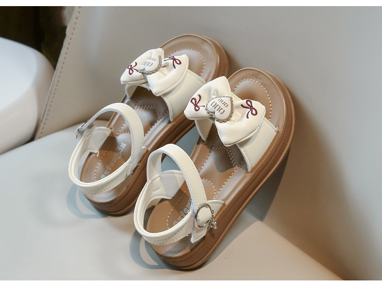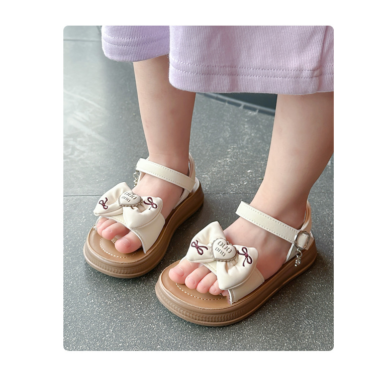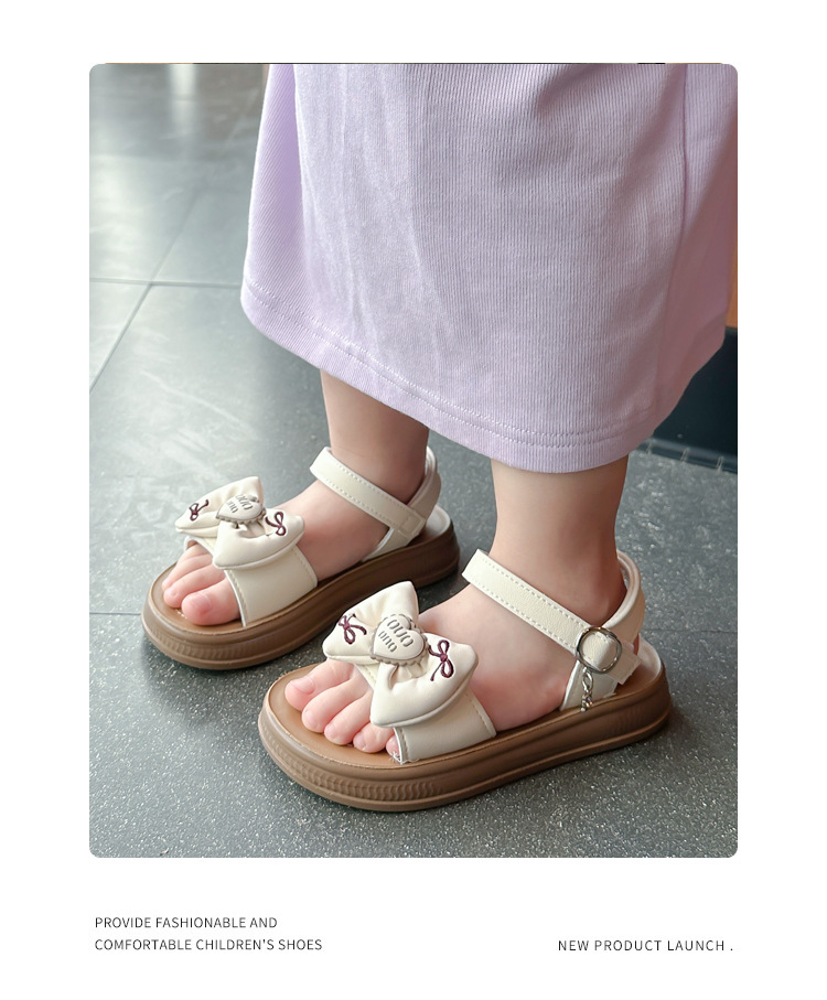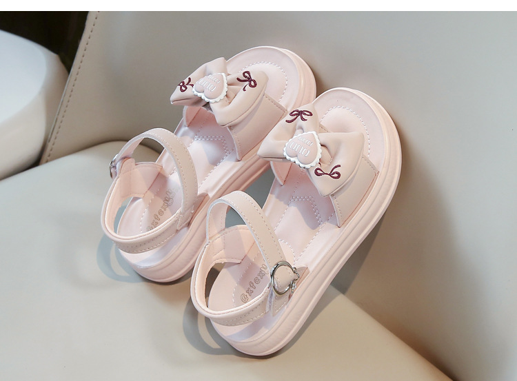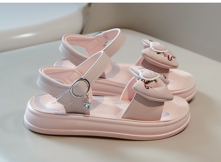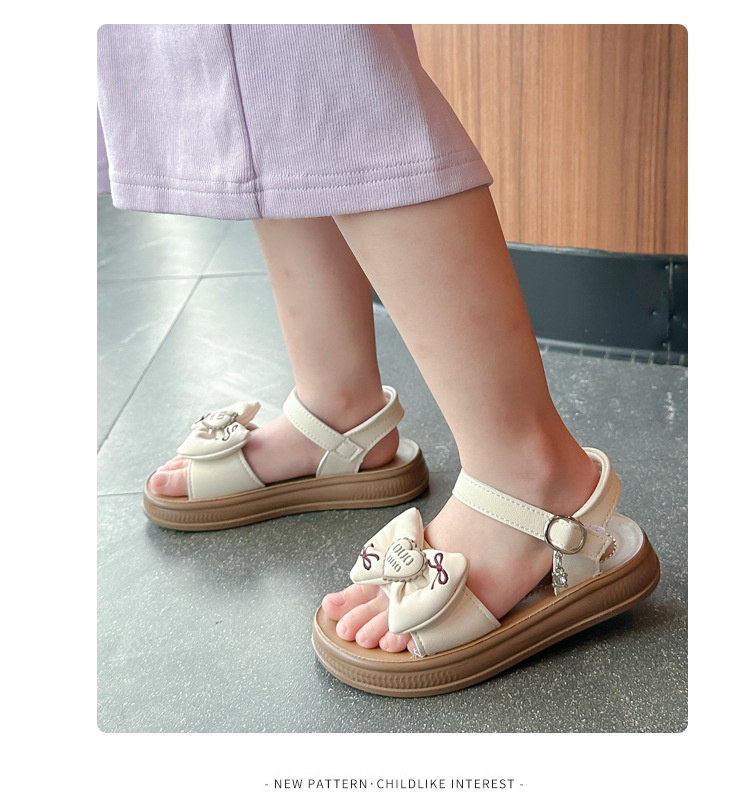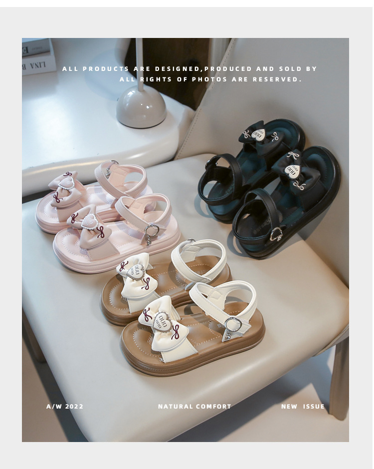 어린이 해변용 신발 2026년 여름 귀여운 리본 하트 여아 단색 샌들 소중대형 아동화