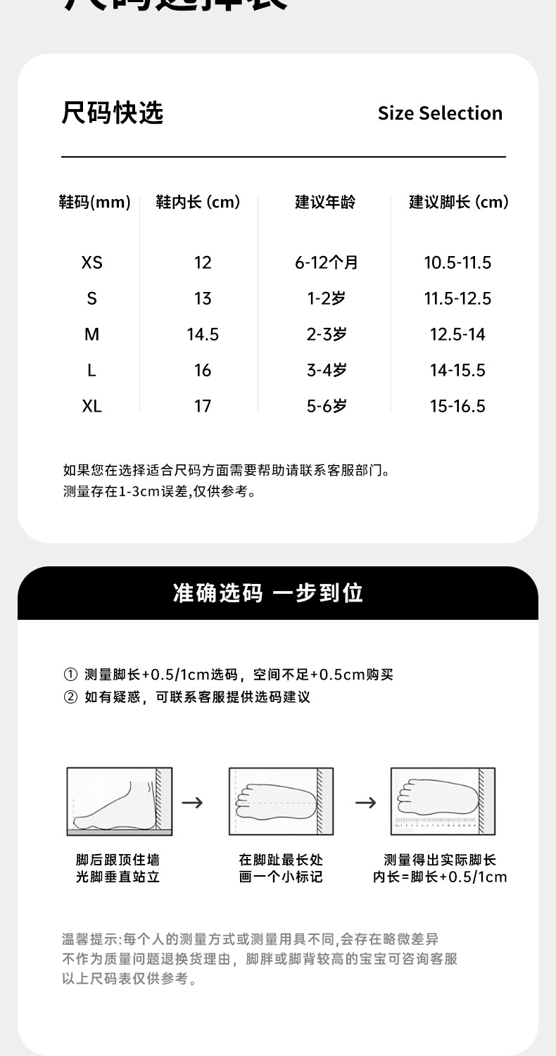 • S 사이즈 내부 길이 13cm 1~2세에게 권장