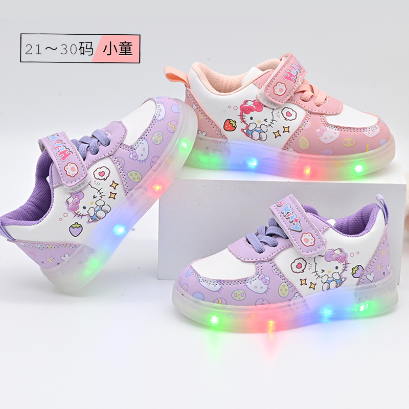 소녀 빛나는 운동화 패션 경량 소녀 흰색 신발 캐주얼 신발 2025 봄 가을 어린이 가죽 신발스토어 가기