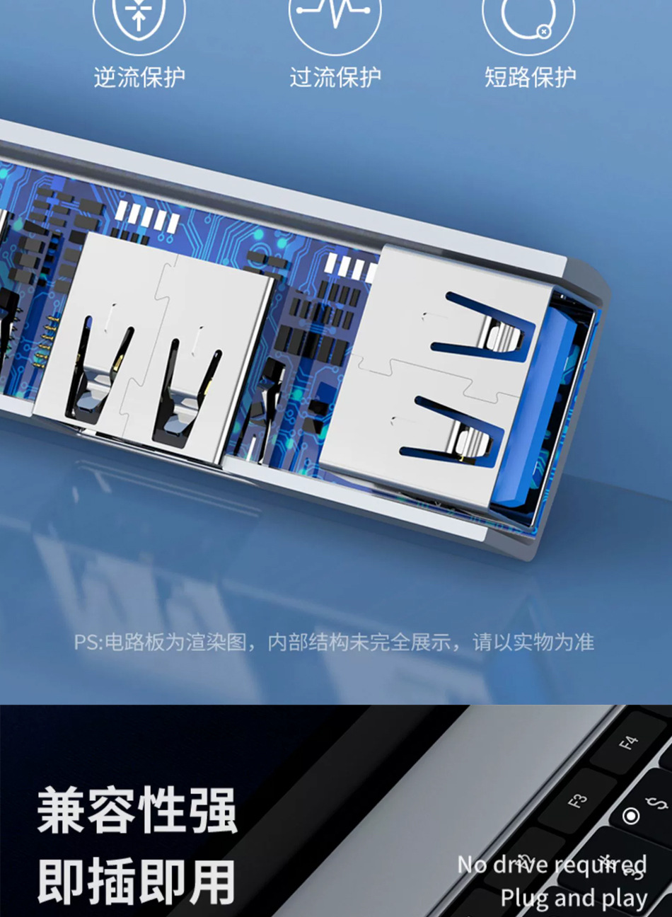 USB2.0接口 理论传输速率480Mbps,兼容键鼠、打印机等低功耗设备)