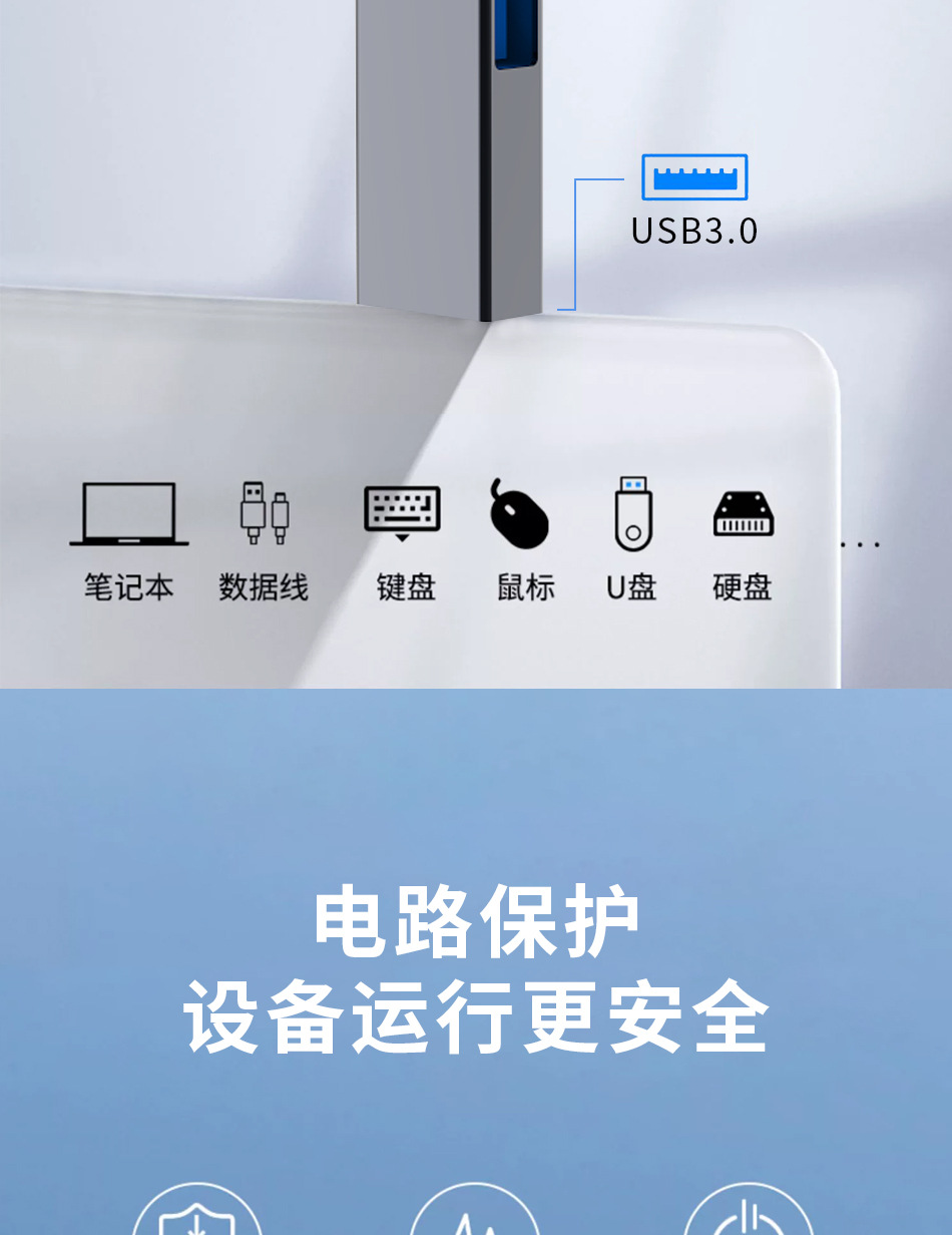 USB3.0接口 理论传输速率5Gbps,适合高速U盘、移动硬盘等)