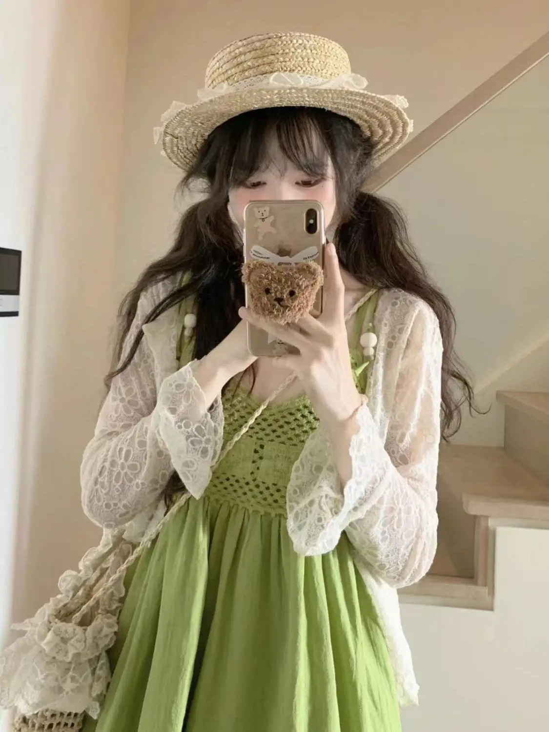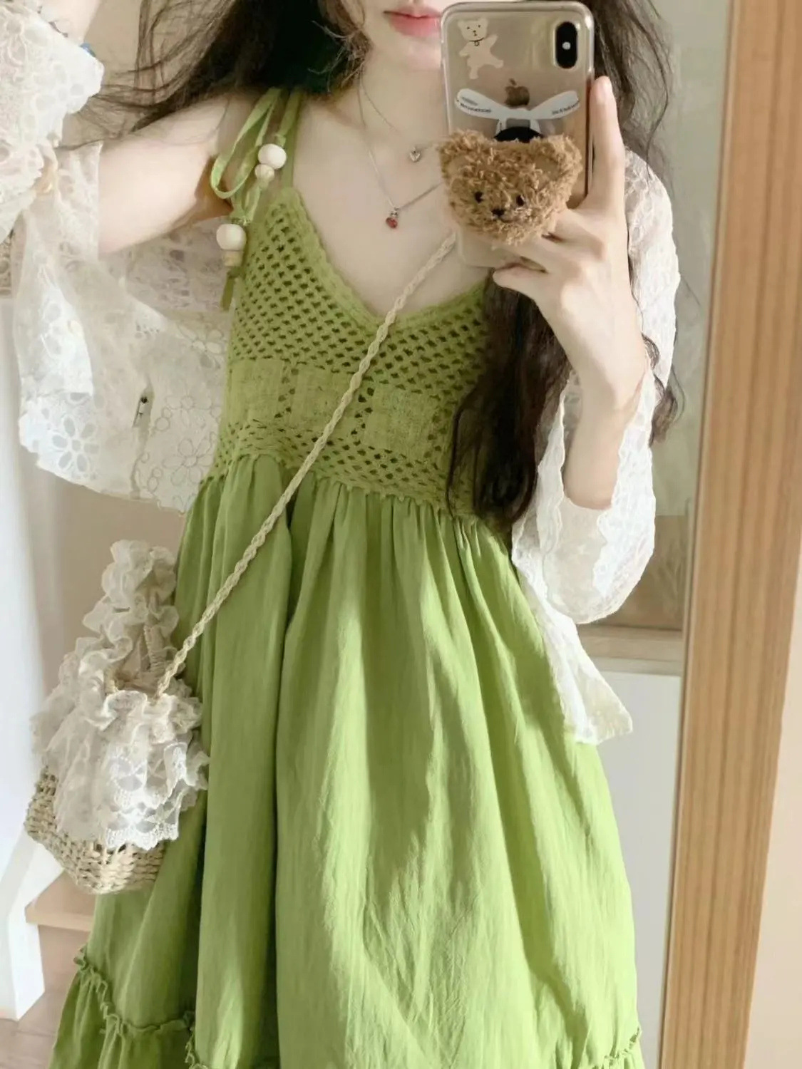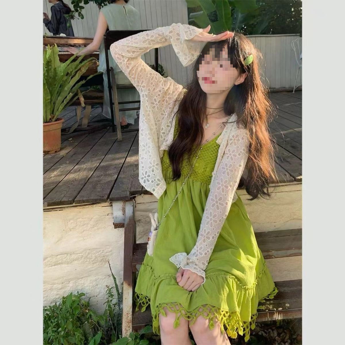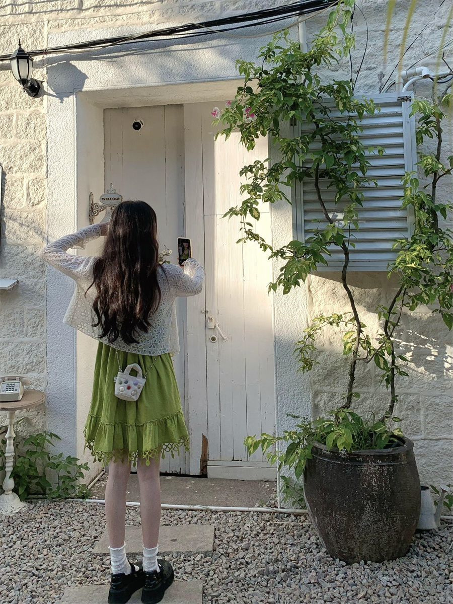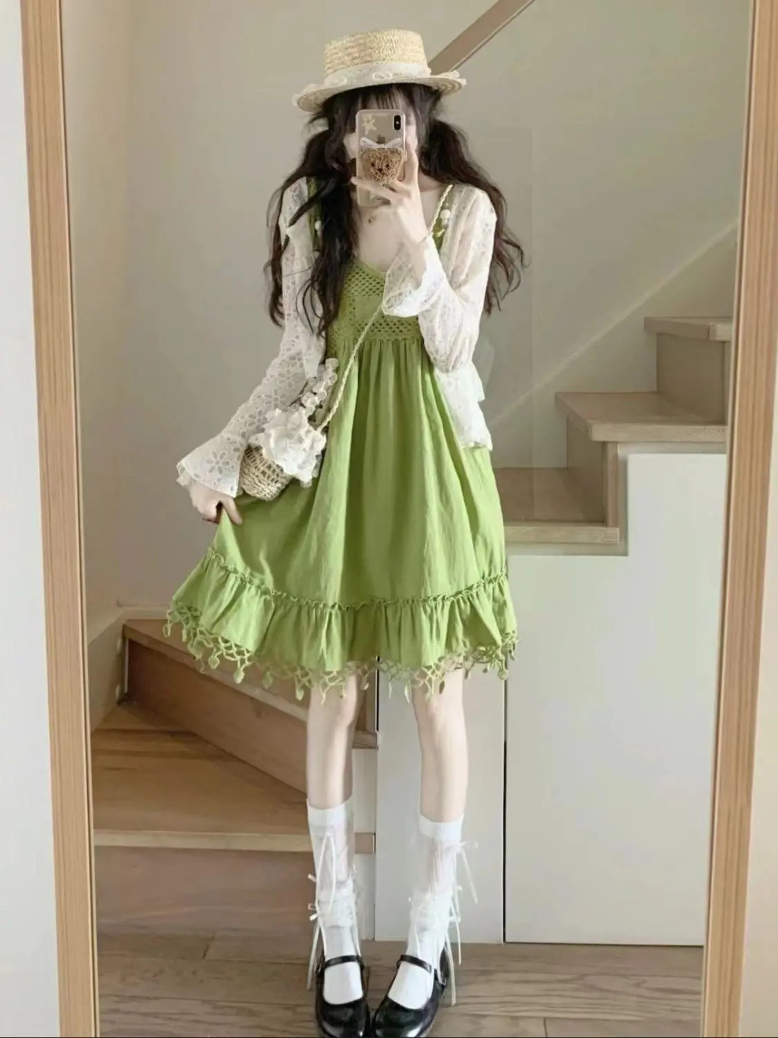 보헤미안 스타일 아큐라 그린 술 민소매 스트랩 원피스 여성 여름 인형 스커트 도파민 스커트스토어 가기