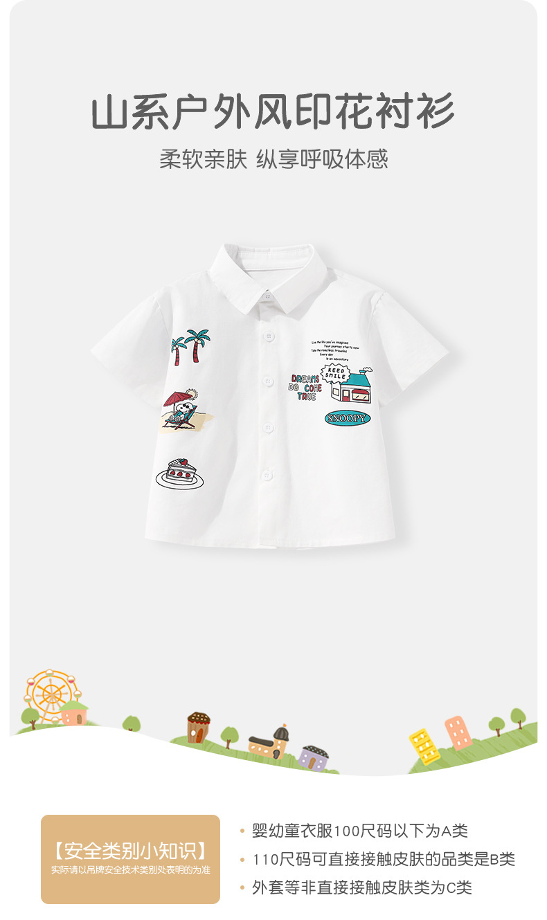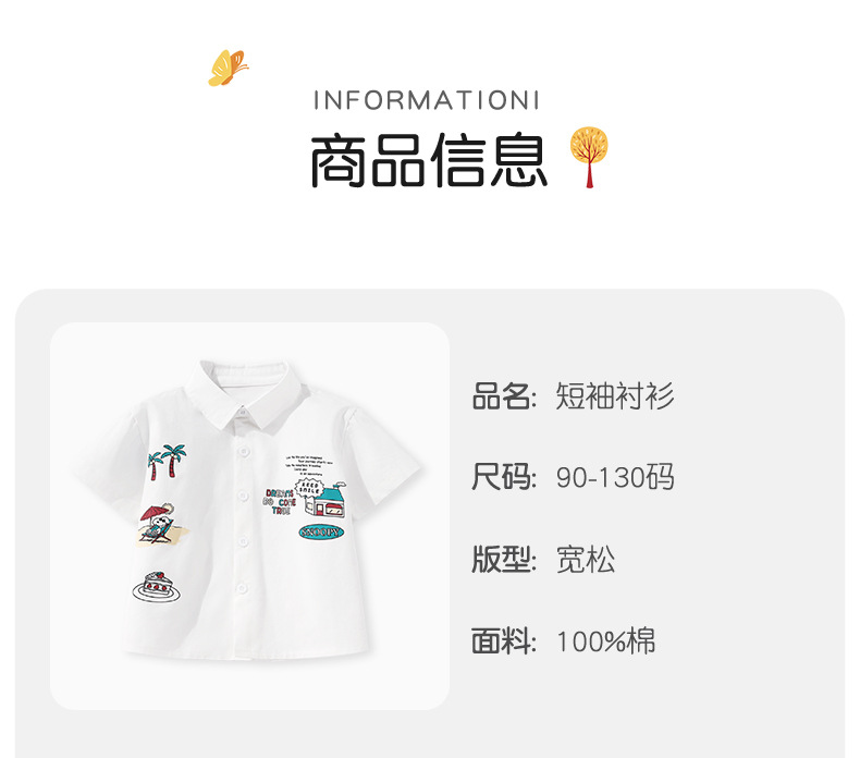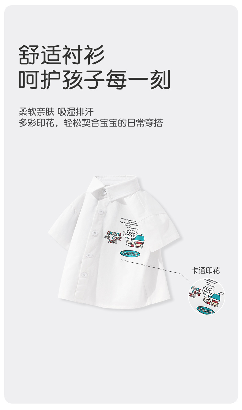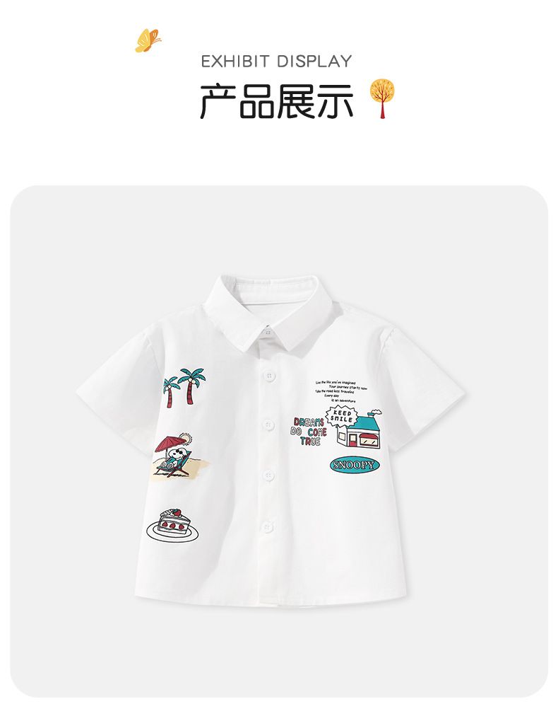 스누피 여름 아동용 순면 반팔 셔츠 남아용 만화 자수 다용도 디자인 대학 스타일 셔츠스토어 가기